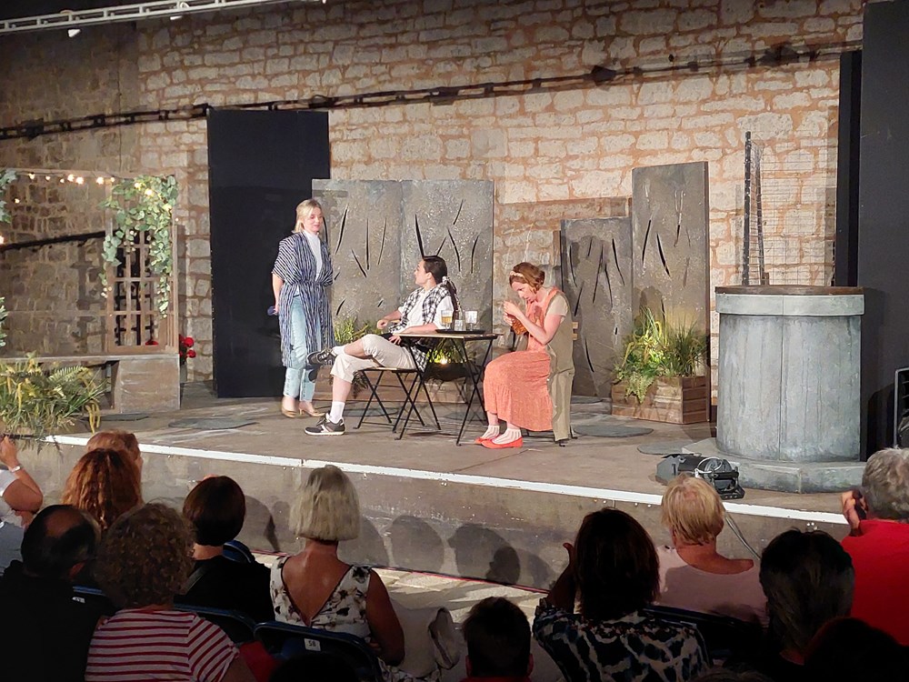 Gradsko kazalište Požega gostovalo je s predstavom Alana Ayckbourna "Guja u njedrima" u režiji Rajka Minkovića. Uloge su tumačili Ines Bojanić, Jasna Palić Picukarić, te Hana Hegedušić, i Ružica Maurus. Dvije sestre naoko su solidarne nakon očeve smrti te ih zajednička nevolja ponovno spaja nakon trideset godina što se nisu vidjele, a prepreka se javlja u liku očeve njegovateljice, koja ih ucjenjuje. I stvari kreću neočekivanim smjerom.