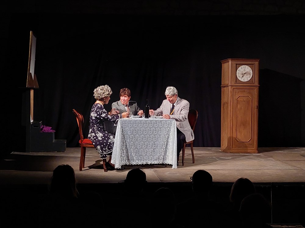 Iz Italije je došao Collettivo Terzo Teatro, Gorizia s predstavom Maura Fontaninija "Lopov, dva vjenčanja i sprovod". "Napisana tijekom lockdowna, slobodno inspirirana djelom 'Er cassamortaro', jednom od perjanica Gigija Proiettija, ova komedija predstavlja napuljsku obitelj, onu komendatora Nestorea, Clotildinog muža i oca Biance, neutješne usidjelice sada već četrdesetogodišnjakinje", opisana je ova predstava, a kada je riječ o ostvarenju svestranog Gigija Proiettija, glumca, režisera, tv-voditelja i još puno toga drugog (1940.-2020.), ne treba sumnjati u kvalitetu.