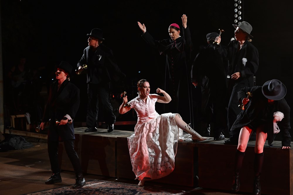 Ove godine na repertoaru nije bio Shakespeare, već Brecht, što i nije potpuna novost no ''Prosjačka opera'' u prijevodu s njemačkog Karla Hubaka koji je tu i dirigent, glazbeni voditelj i aranžer uz dramaturgiju Željke Udovičić Pleština i u režiji Lenke Udovički osim što donosi snažan tekst, ima i sjajan ansambl – sve žene i jedan muškara, ali i sjajan glazbeni sastav tako da dolazi do zbilja vrlo s(p)retne simbioze između glazbenog i tekstualnog dijela.