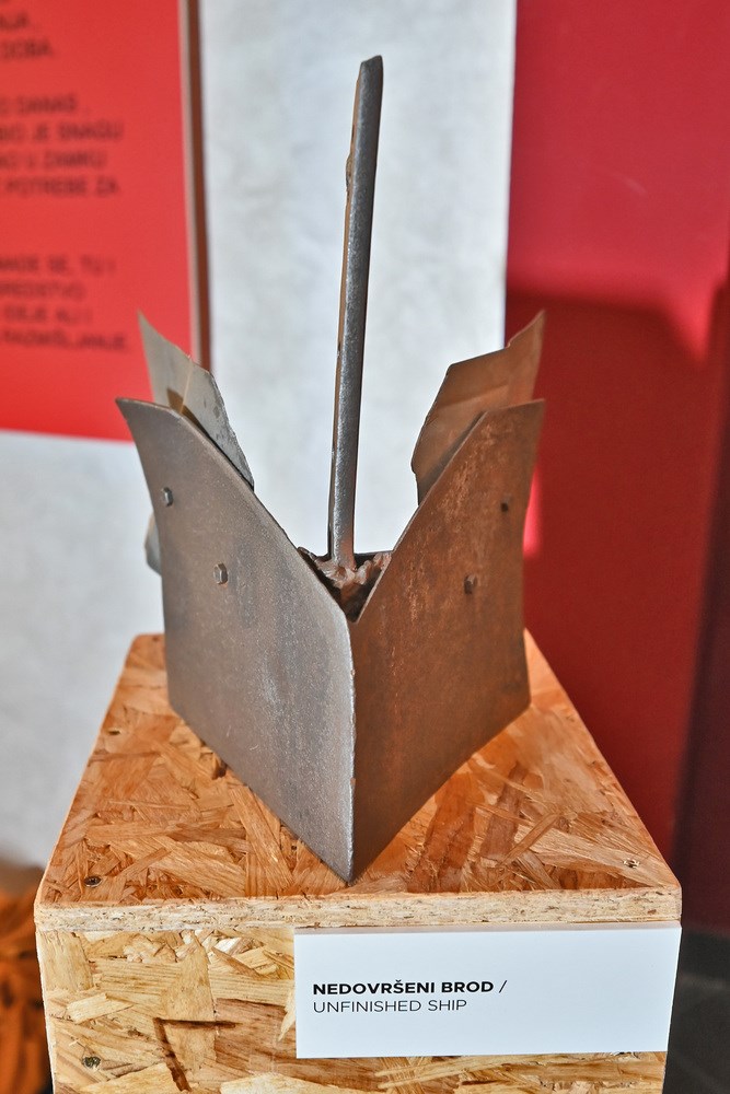 - Priča je puno složenija i slojevita jer govori jezikom skulpture, jezikom kulture, filozofije, književnosti, poezije, ali govori i pulski. Grad Pula je stasala, nastala kao najveći istarski grad, ne samo zato što ima luku i sveučilište i druge vrijedne stvari nego prije svega zbog brodogradilišta, on je razlog zbog kojeg se uokolo razvio grad i gotovo se u gradu. »Ready-made« omogućava takva razmišljanja i povezivanja, poetska, kiparska, umjetnička.