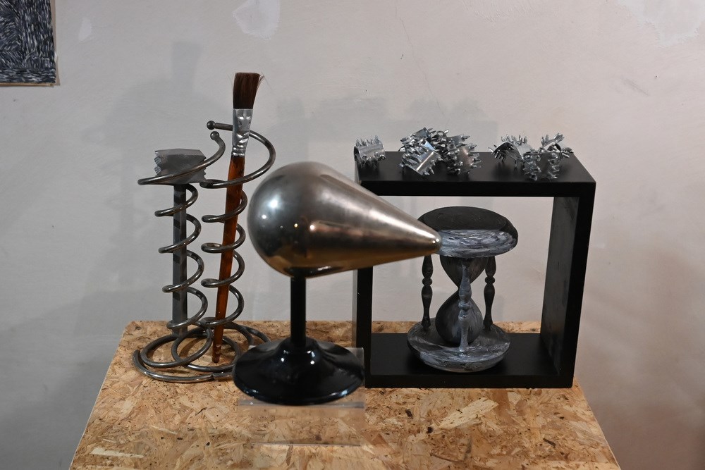 - Svaki predmet ima svoju bazu i svoju priču. Ready-made je kod mene zastupljen samo djelomično. On nije moj temeljni način izražavanja nego ga koristim tu i tamo, kaže Gulin kod kojeg se ready-made pojavljuje više kao pomoćno sredstvo za naglašavanje konteksta i razrade ideje ali kao moćno sredstvo provokacije na razmišljanje. Tako da je njegova izložba u Hermani djelomično pulska priča, ali u širem smislu Gulin tu u svoj kreativni ciljnik uzima diktatore, autokrate i slične likove.