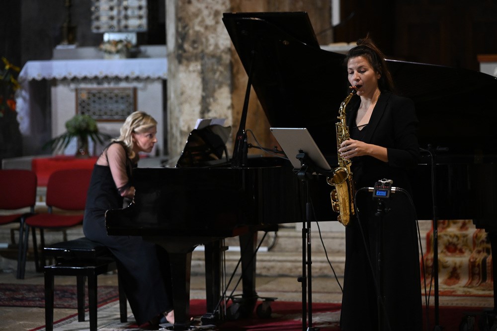 U crkvi svetog Franje, naime, predstavile su se saksofonistica Jovana Joka, rodom Puljanka s ljubljanskom adresom i pijanistica Danijela Horvat, isto iz Pule, pokazavši lirski, nadahnut, snažan, osebujan i bogat dijalog saksofona i klavira.