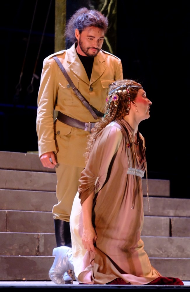 Dakako, u operi se, kao što je to karakteristično za taj žanr, nižu razne epizode ljubavi, izdaje, povijesnih događanja, zapleta, borbe pozitivnih i negativnih junaka u dojmljivo oblikovanim kostimima Berna Leistnera i Lea Kulaša, a režiser i scenograf je Detlef Seelter. Scenografija u Areni je posebna stvar, jer je i sama Arena dio povijesti, kulture, i za tu snažnu dramsku komponentu opere - dio je scene u scene. Ranijih godina opere upriličene u Areni, zbog tehničkih mogućnosti, nisu imale uvijek bogatu scenografiju, no ovoga je puta to bilo drukčije, te su se komponente kostimografije i scenografije stopile sa samom Arenom.