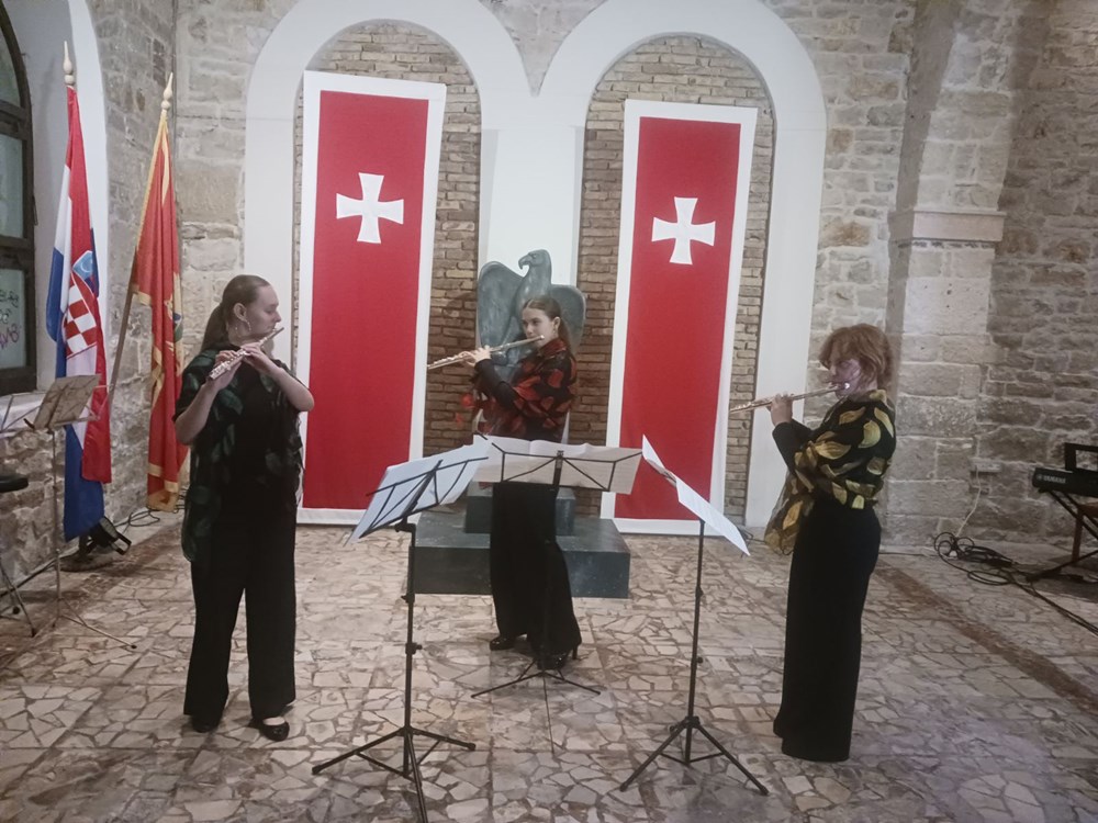 Na samome početku, nakon pozdravnih riječi Gojka Nešovića, u ime domaćina ove manifestacije, koji je istaknuo značaj Njegoševih dana, hrvatsku te crnogorsku himnu, kao i istarsku svečanu pjesmu "Krasna zemljo, Istro mila" izveli su mlada sopranistica Anamari Smuk, maturantica pulske glazbene škole Ivana Matetića Ronjgova u pratnji pijanista Frana Šimunovića. Nakon njih, nastupio je zbor Zajednice Crnogoraca i prijatelja Crne Gore grada Pule Tara, koji djeluje tek mjesec dana pod vodstvom mlade studentice pulske Muzičke akademije Nađe Perović. Entuzijazam postoji, i zasigurno će iz nastupa u nastup biti sve bolji i uigraniji, a pohvalno je da su nastupili nakon tek mjesec dana vježbanja uz ovu dirigenticu. Pulska glazbena pedagoginja i flautistica Samanta Stell, pripremila je za ovu prigodu tri učenice flautistice iz pulske glazbene škole, a one su Sara Bernac, Hana Pavleković i Nada Pliško, koje smo već i ranije imali prilike čuti u raznim kombinacijama.