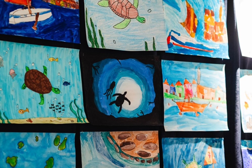 Likovni radovi nastalih na interaktivnoj naracijsko-pripovjednoj radionici “Kornjača Katarina -Tarta Caterina” održanoj povodom prošlogodišnje Noći muzeja te radovi inspirirani Sv. Eufemijom i Rovinjem učenika 2.a razreda OŠ "Vladimira Nazora" pretvorili su galeriju muzeja u idealno mjesto za pripovijedanje priče o kornjači Katarini u dva termina.