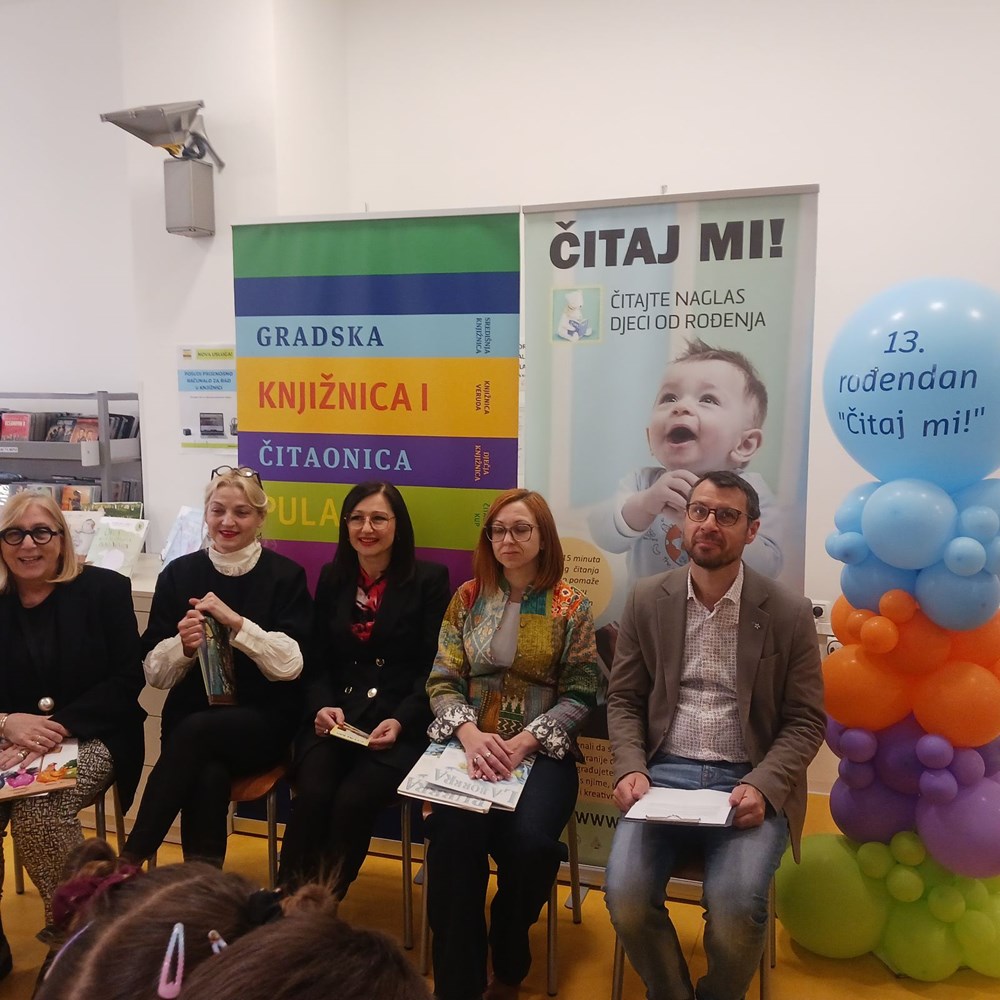 Veselo, maštovito, uz puno dječjeg smijeha, radosti i veselja bilo je obilježavanje 13. rođendana nacionalne kampanje za poticanje čitanja naglas djeci od rođenja naslovljene "Čitaj mi!", što je održano u pulskoj Gradskoj knjižnici i čitaonici na Međunarodni dan dječje knjige, u suradnji ove ustanove s Komisijom za knjižnične usluge za djecu i mladež Hrvatskoga knjižničarskog društva, UNICEF-om i partnerskim organizacijama.