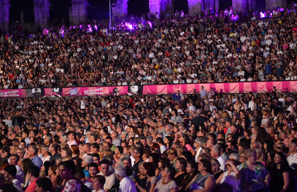 Prepuna Arena, najviše popunjena tijekom ovogodišnjeg, 65. Pulskog filmskog festivala dočekala je dodjelu nagrada te projekciju drugog dijela filma „Mamma mia“. Već u 20.45 kolone ljudi ulazile su Arenu, ovoga puta, svim provjerama unatoč, vrlo brzo, a nešto poslije 21 sat Arena je bila već prepuna.