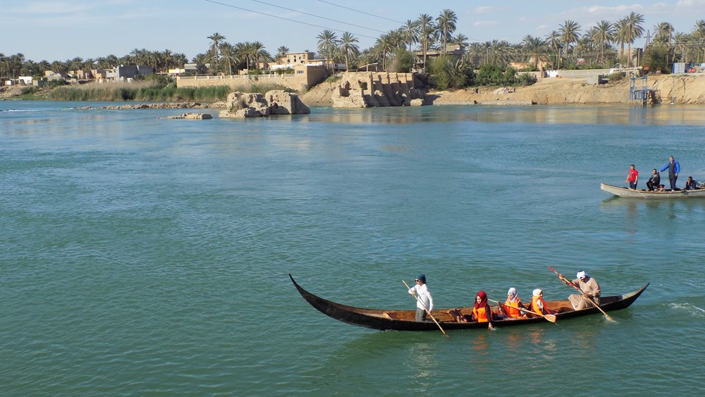 Volonterke i studentice na Eufratu veslaju u "Taradu", iračkoj "gondoli" (Snimio R. Salim)