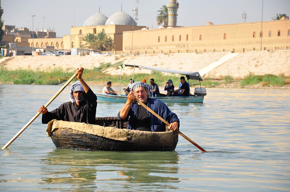Rashad s tradicijskim iračkim pokrivalom na glavi (dvobojni karirani ručnik s uglovima svezanima na tjemenu) i barunica Francesca u neo- hippy orijentalnom outfitu, gosti i novinari na podu uvaljeni u prostrane duboke jastuke - bila je to ugodna alternativna iračka priča nakon potresne UNESCO-izložbe. Rashad je na tragu Noine arke (!) i proučavanjem povijesti iračkog vodoprometa na Tigrisu i Eufratu kroz stoljeća u močvarama delte pronašao posljednje majstore još sposobne prastarom tehnikom konstruirati solidan čamac /brodicu. Nije iznenadilo da su lokalni partneri projekta "Reale Societa' Canottieri Bucintoro", veslačko društvo venecijanskih obrtnika, graditelja čamaca i gondola.