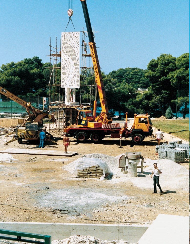 - Sve ima svoju štoriju. Imao sam veliku izložbu u Milanu 1976. godine i tu je izložbu došao otvoriti i predgovor u katalogu napisao Darko Schneider, tadašnji direktor zagrebačke Moderne galerije. U povratku je sa mnom došao u Pulu. U ono vrijeme Uljanik je gradio one velike brodove, a hrpe limova, otpaci broda završavali su na Katarini, Montegrande. I tada je Darko predložio da napravim skulpturu. A, zamisli, tada sam se kiparstvom bavio tek godinu dana. I odlučim napraviti takvo nešto. Darko je tada u Pulu došao da bi se s tadašnjim gradonačelnikom dogovorio oko ostavštine Antona Motike. Ali, dođe jedan, neću ti reći ime, i kaže: "Što je nama ovaj 'profugho' došao soliti pamet?" Drugi mu kaže da je umjetnost internacionalna stvar, i da sam ja ne samo dobar nego velik umjetnik. A ovaj prvi opet: "Ali oni su fašisti". A mog su tatu, kad bi bio nekakav fašistički skup, znali stavljati u preventivni zatvor u cementaru. I tada su čak u policiji provjerili kartoteku cijele moje obitelji i ustanovilo se da su svi časni ljudi. I onda se ušlo u proces izrade skulpture. Uljanik je dao limove. To je bilo u kolovozu 1979. Imali smo rok od 40 dana.