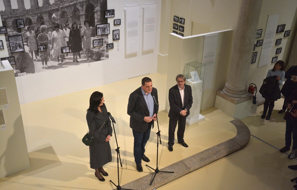 Izložba nudi i raritetne fotografije, među ostalim i onu na kojoj mlada Vesna Girardi Jurkić stručno vodi jednako mladu britansku kraljicu u Areni, a iza njih su predsjednik Jugoslavije Josip Broz Tito i njegova supruga Jovanka. Kasnije, točnije 17. studenog 1990., ovaj je muzej posjetio i prvi hrvatski predsjednik Franjo Tuđman, a osim fotografije s njim u prolazu kod Dvojnih vrata, može se na izložbi vidjeti i preslik njegove dulje impresije ispisane u knjizi dojmova.