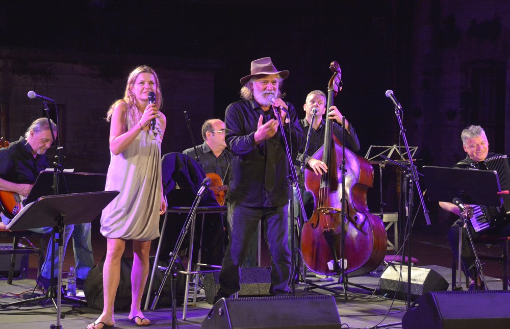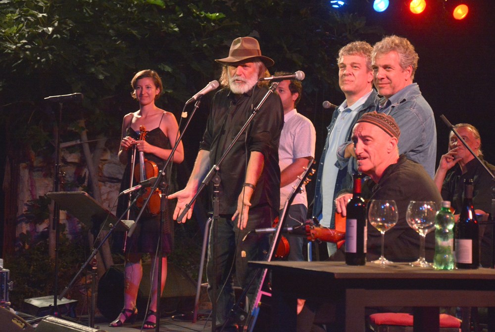 Šerbedžija i Zapadni kolodvor odmah su počeli s veselim i brzim ritmovima oraspoloživši publiku, a ubrzo im se pridružio i Vlado Kreslin, inače česti gost na ovoj pozornici, ali koji nije bio tu zadnjih nekoliko godina. Potom je tu bila neizostavna „Barbara“, „Kosa boje maka“, brza, dinamična, ritmična, zatim međimurska njemu najdraža pjesma, te druge pjesme koje su na jedan ili drugi način obilježile pojedine etape njegova života. Uz pjesme, Šerbedžija je zabavljao publiku anegdotama iz svog nimalo dosadnog života, a ove godine prvi put su mu se pridružile sve njegove kćeri – najprije Lucija, afirmirana glumica koja će glumiti u ovogodišnjem premijernom naslovu, Euripidovim „Bakhama“, zatim i Vanja, Nina i Milica, potonja jedina profesionalna glazbenica u obitelji, kako je sam rekao. Ove tri mlađe njegove kćeri, iz braka s redateljicom Lenkom Udovički, od malih nogu su na Brijunima, kako se stvaralo kazalište Ulysses, tako su i one odrastale.
