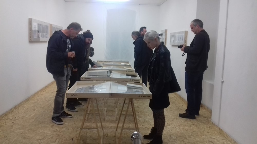 Kustos Golub publici je pokazao neuobičajene strukture pojedinih izloženih radova - dvije knjige u jednoj (monografija "Arhitektura/Arhitekt Radovana Tajdera"), tri (katalog izložbe Nenada Robana "Nepoznato mjesto"), te jednu, ali 'beskonačnu' (Josip Vaništa - "Ukidanje retrospektive").