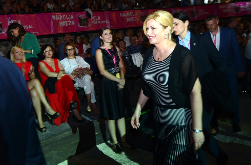 - Na ovom su se festivalu prikazivali filmovi koji su obilježili povijest hrvatske kinematografije, a Pula je ugostila mnoga velika imena europskog filma i filmske zvijezde, kako se običava reći pod ovim zvjezdanim nebom u najljepšem kinu svijeta. Ovo jedinstveno kino daje nam povlasticu doživljaja suvremene umjetnosti u antičkom ambijentu, kao spoj prošlosti i suvremenosti. Na ovom mjestu predstavljali su se umjetnici i njihova djela, o njima su sudili stručnjaci, ali prije svega vi, pulska publika, čiji glas uvijek ima posebnu važnost i vrijednost. No, što ostaje trajna vrijednost Pulskog filmskog festivala jest predstavljanje suvremene hrvatske filmske produkcije, njezine raznolikosti i svestranosti, zbog čega sam s posebnim zadovoljstvom u prigodi ovogodišnjeg Dana državnosti festivalu dodijelila Povelju Republike Hrvatske za dosadašnji rad i kao poticaj za ustrajnost u budućnosti. Uspjesi koje hrvatski film posljednjih godina ima kod domaće i svjetske publike ohrabruje i veseli, jer svjedoči o tome koliko su hrvatski autori osjetili puls vremena, želje publike da u njihovim djelima prepoznaju našu stvarnost. Film kojim se večeras otvara festival dio je opusa redatelja kojeg glumci posebno vole jer ih potiče da pokažu najbolje od svojega glumačkog talenta. Kaže se kako su sve životne zagonetke riješene u filmu. Uputimo se stoga u potragu za odgovorima u filmovima ovogodišnjeg 66. Pulskog filmskog festivala kojeg proglašavam otvorenim, kazala je hrvatska predsjednica Kolinda Grabar-Kitarović prilikom otvorenja festivala.