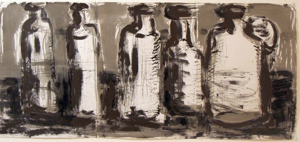 - Posebno je dojmljiv poliptih koji autor opisuje kao glavu. Radi se o nizu grafičkih otisaka na kojima u prvom planu nalazimo ocrtan lik, lice, glavu. U pozadinama razaznajemo moguće oblike oronulih arhitektonskih zdanja. Pred nama su transformacije lica koje iskazuju patnju. Dio radova je na rubu geometrijske apstrakcije ili ekspresije oblicima, obrađuje intervencije u krajobrazu. Zanimljiv je niz radova na temu ruke. Umjetnik u ruku dodaje pijesak, a različitim stanjima pijeska, rasterima, dramatizira niz. Dio radova nadrealističkim jezikom svjedoči maštovitost uronjenu u suvremenost. Umjetnik problematizira moguću situaciju nakon općeg potopa koji bi se dogodio u sadašnjosti. Slijedi niz radova koji problematizira snove, geometrijski oblici pomiješani su sa spontanim činjenjem u materijalu. U konačnici, umjetnik se odlučuje predstaviti autoportretom. Ali, on to ne čini na standardni način. Umjetnikova aktualnost, interpretacija realnih stanja i situacija ove radove svrstava u svjedočenja vremena, pojašnjavao je Borkovsky posjetiteljima viđenje radova tog ruskog umjetnika koji je jedno vrijeme radio u Izraelu, Švicarskoj i Kanadi, objavljivao je u mnogim časopisima, a izlagao u mnogim svjetskim galerijama. Posljednje mu je priznanje za video rad upravo ovih dana stiglo iz Brazila. (Napisao i snimio Luka JELAVIĆ)