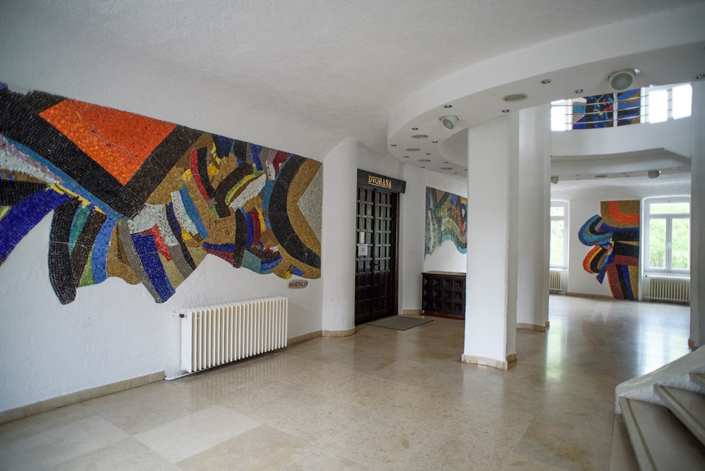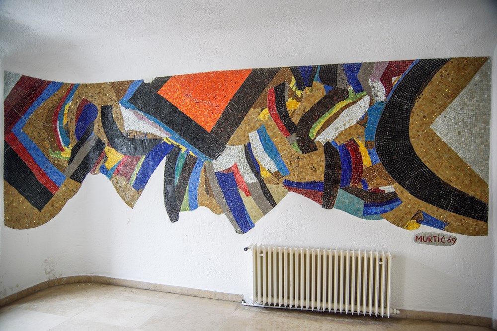 Mozaici su u Narodnom domu, podsjetio je Matija Nežić iz Učilišta, postavljeni 1969. godine prilikom dogradnje i rekonstrukcije zgrade i kinodvorane. Zgrada je dograđena za jedan kat, a unutrašnjost, hol i vijećnica oplemenjeni mozaicima. Kamber je svojim projektom adaptacije Narodnog doma, inače tipične građevine iz austrougarskog doba s pravilnim tlocrtima, dio prostora pretvorio u nove prozračne otvorene nepravilne površine uvođenjem spuštenih zakrivljenih stropova, kao i obloga na uglovima i stupovima koji zajedno s Murtićevim mozaicima tvore cjelovito osmišljen primjer kasnomodernističkog dizajna interijera javnog prostora i primijenjene umjetnosti velikih dimenzija, što se rijetko susreće.