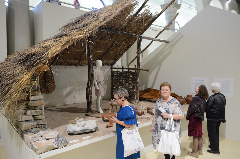 Na izložbi je konstruirana i 'pećina', tamna soba bez svijetla koja videćoj osobi može pomoći da osjeti što znači živjeti u mraku, ali i da osjeti kako su u prapovijesti pećine bile vlažne nastambe u kojima je vatra pružala svjetlost, toplinu i sigurnost od divljih životinja te služila u pripremi hrane. Osim replika prapovijesnih predmeta, posjetitelji će moći dodirnuti/osjetiti/vidjeti rekonstrukcije različitih životnih sredina poput nastambi kao i mjesta ukopa. Tako je prikazan i ukop žene i djeteta unutar kuće iz Kargadura kod Ližnjana, koji je jedinstven na području Istre - pokojnici su položeni u zgrčenom položaju, a zanimljivo je da je DNK analizom dokazano kako žena (u dobi od 30 do 40 godina) i dijete (u dobi između dvije i četiri godine) nisu majka i kći!