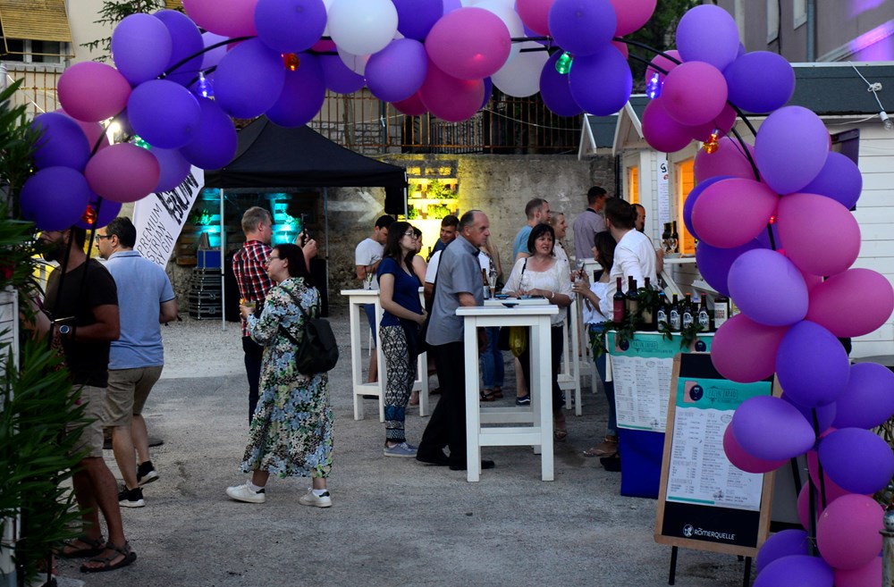 Istovremeno je živahno i opušteno u lounge gastro atmosferi u paralelnim kućicama i okolnom malom prostoru koje je pretvoren u pravi mali gastro kutak. U jednoj kući nude se fantastične pize od rižinog, sojing ili durum brašna pazinske hiz pizerije Pazin Zapad. Pršut Tomasu mamio je bojom i mirisom u dugoj kućici, da ne govorimo o burgerima koje je pripremila nova kulinarska nada Ivan Medić. Burger s jezikom, da se ugrizeš za jezik koliko je dobro! Sorbet sa teraninom ili đinom kao piće dobrodošlice i uvertira u večer uz ritmove Gina iz JinxieGroova. Od pića može se birati- od Aura rakija; Medeje, Teraboto, Oia Viva do craft piva Kampanjole i Bura Brewa.