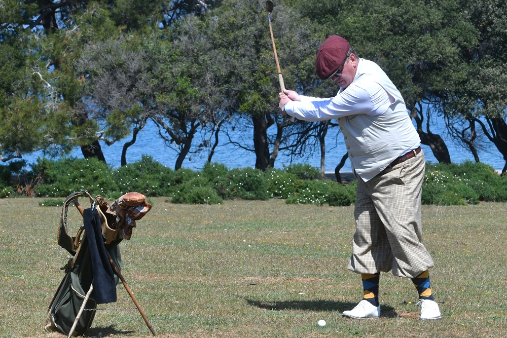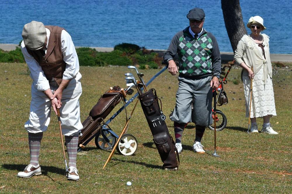 Jučer je na cijelom Velikom Brijunu oživljen duh zlatnog doba, burnih 20-ih godina prošlog stoljeća. Posebno je zanimljivo na brijunskim golf terenima bilo vidjeti hickory golfere odjevene u vintage odjeću - tregere, leptirke i prsluke, kako spretno zamahuju stogodišnjim drvenim palicama.