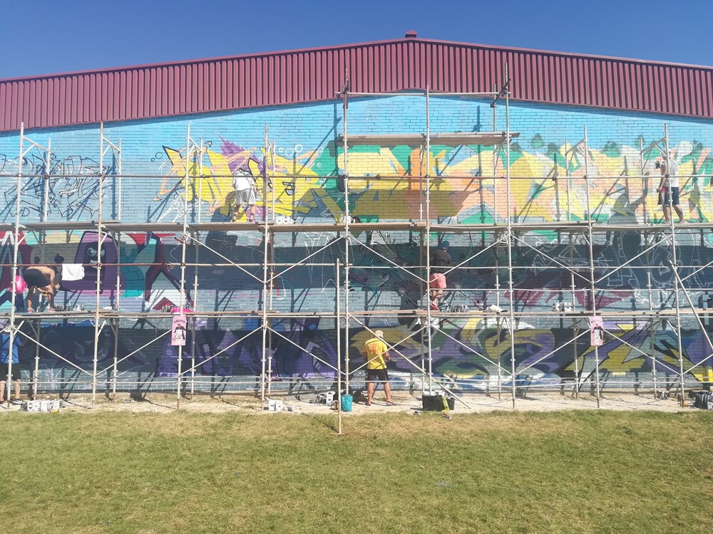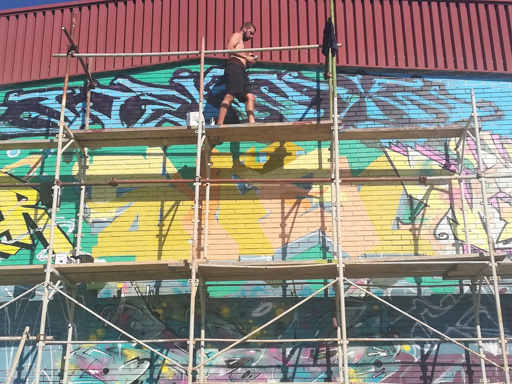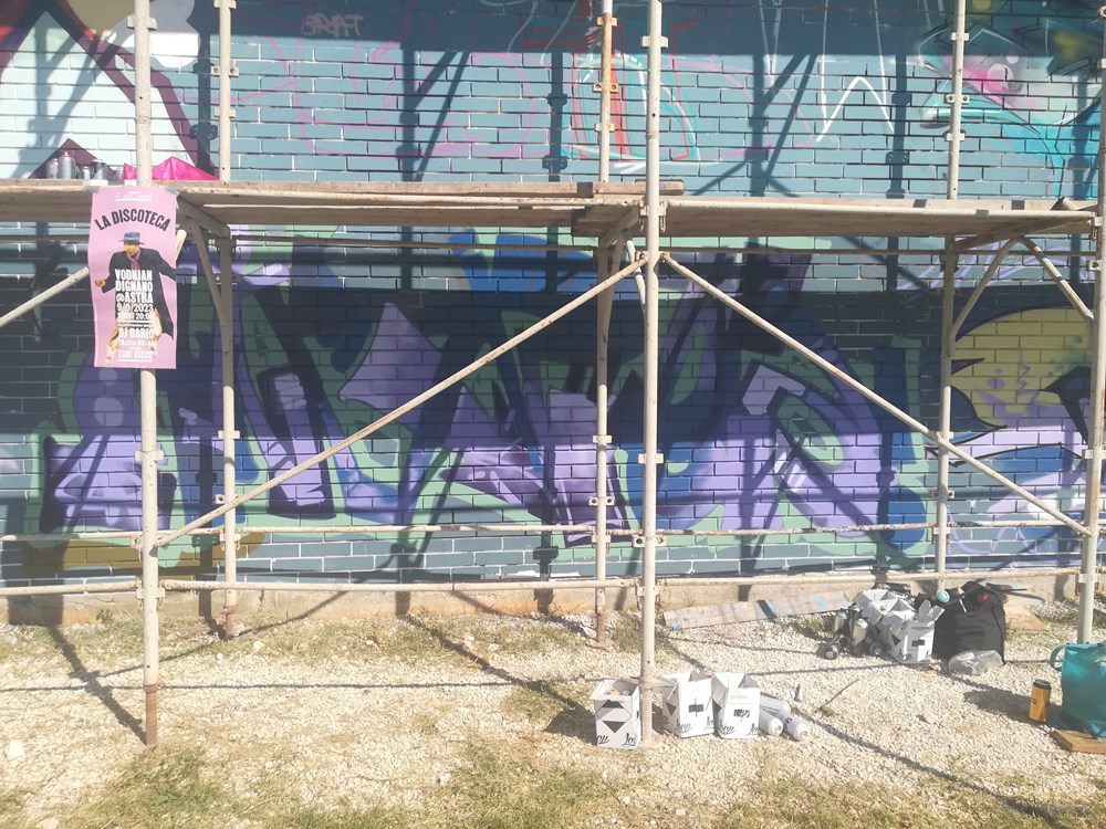 - Ove godine hip-hop slavi 50. obljetnicu, a ovaj je zid (sjeverni), svojevrsna oda toj zajednici, kulturi i glazbi. Idejno, predstavlja četiri elementa hip-hopa, naravno, po interpretaciji umjetnika. Dugo radim evente, a Vodnjan je već bio poznat za murale, stoga sam odlučio baš ovdje napraviti ovaj susret. Grad daje veliku podršku događaju, a tako se promiče nešto u Vodnjanu, osim ulja i vina, recimo. Tu se jasno promiče i hip-hop kultura, a vidim mladima je privlačno. Napomenuo bih posebnu zahvalu, ako mogu, za Zaima "Grgu" Softića, koji je posudio festivalu skelu na raspolaganje do ponedjeljka, kada se skida, kazao nam je Eric.