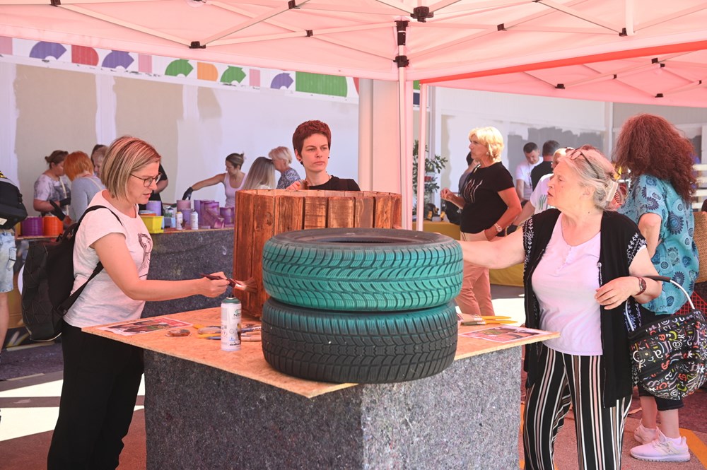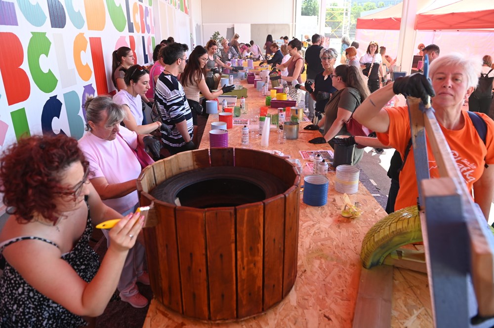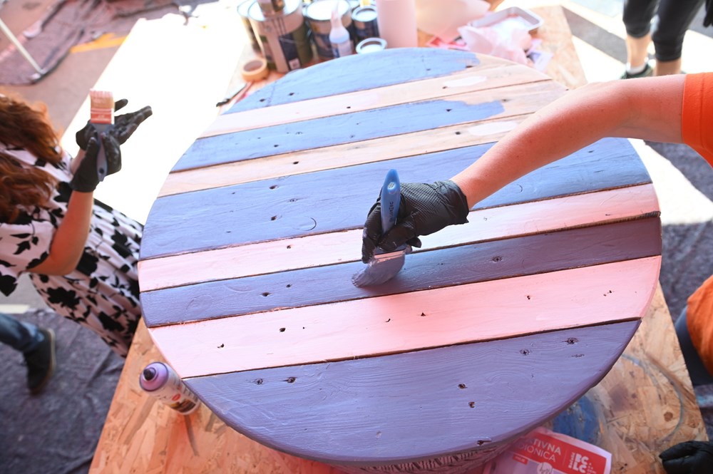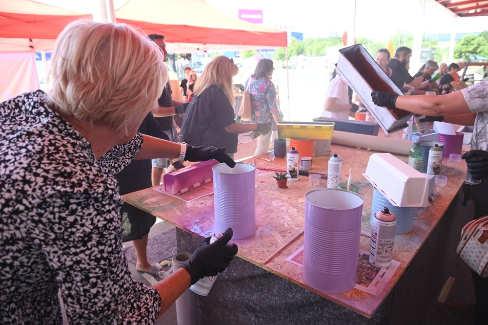 Oslikavale su se limenke, PET ambalaža, gume, stare tegle i vaze pa je sve što bi inače završilo u otpadu, ovdje je dobilo novu svrhu. Uz sprejeve, boje su se prelijevale po recikliranim predmetima.