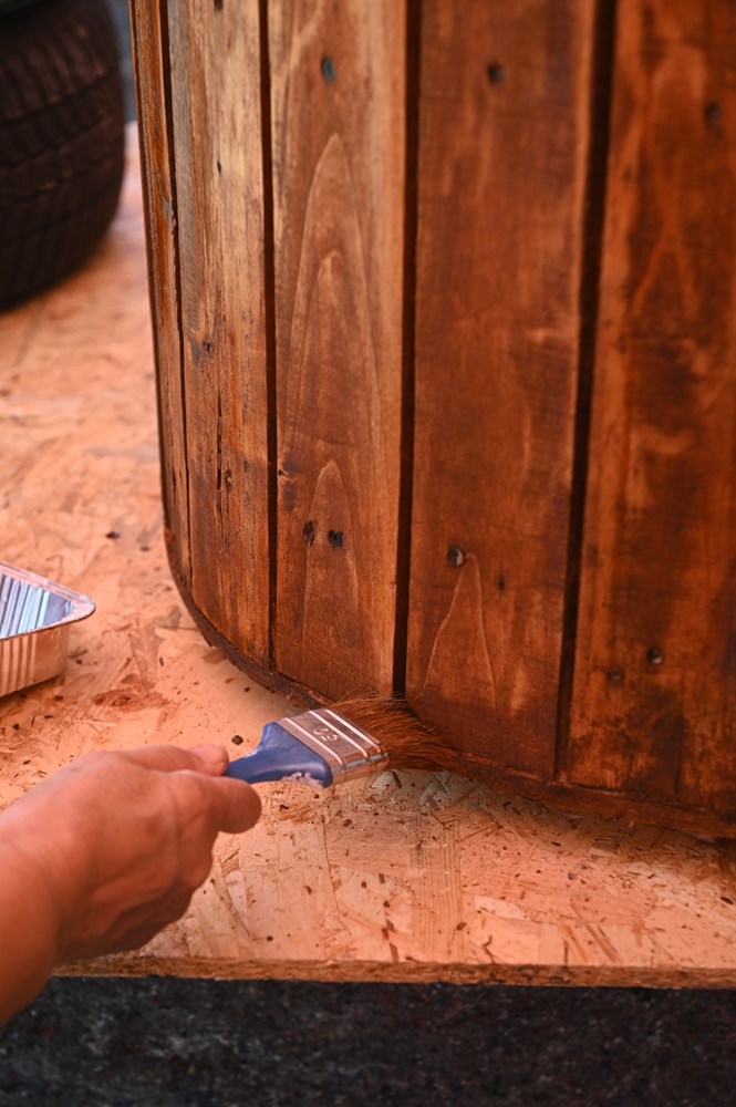 Objasnili su nam tako da je prvi i najvažniji korak bojanja drveta odabir odgovarajuće boje i laka koje će izdržati vanjske vremenske uvjete, a potom se bacamo na posao tako što brusimo površinu, nanosimo impregnaciju i "pituramo" u boju po izboru.