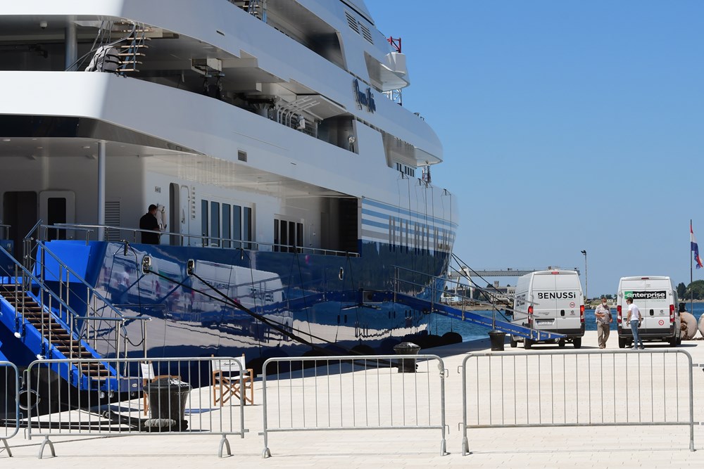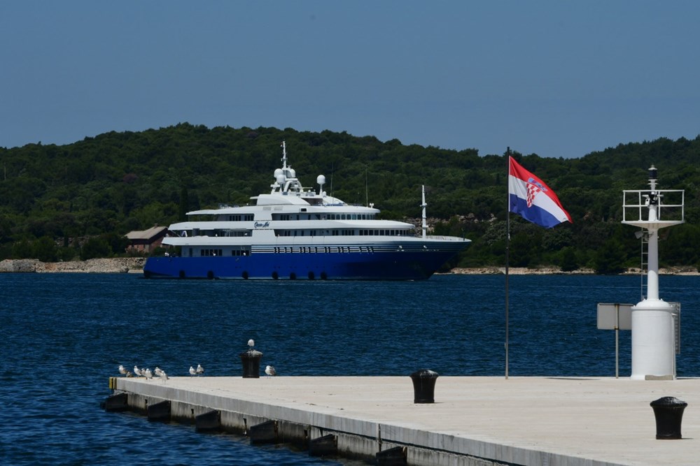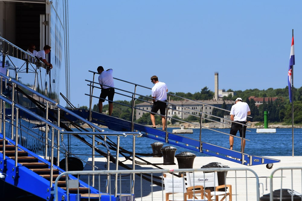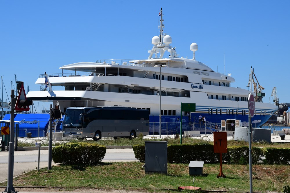 Jahta kojom je Adelson stigao do Pule, "Queen Miri" dugačka je 91,5 metara, te može primiti 36 gostiju u 18 luksuznih kabina, a za njih se pak brine posada od 32 člana.