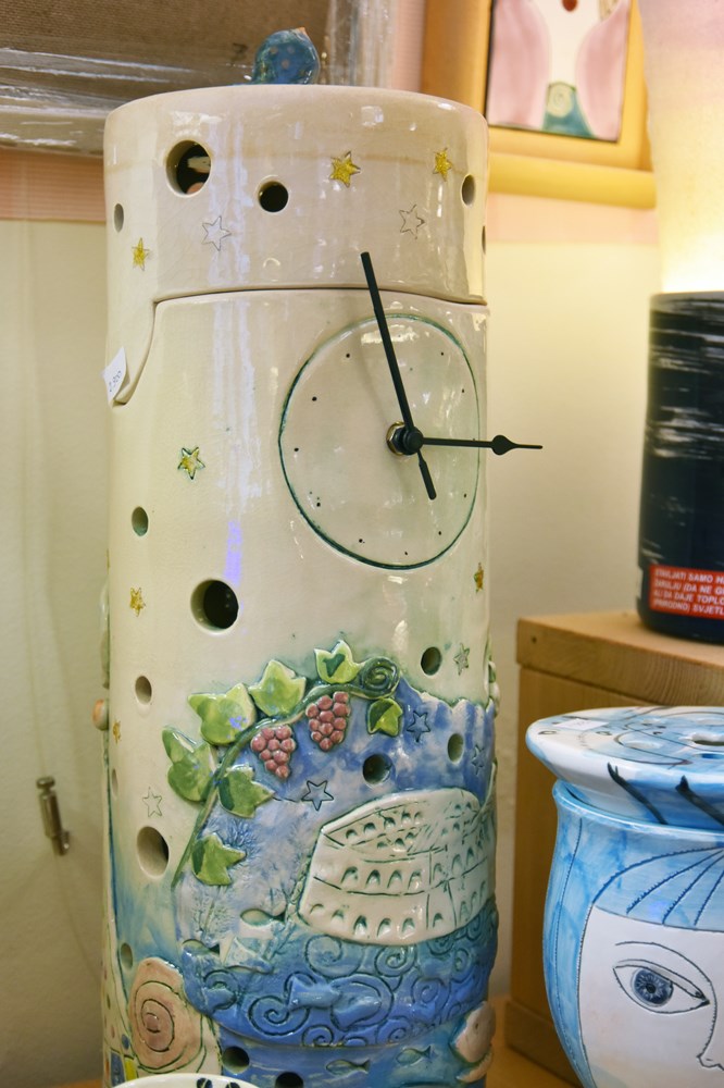 To je ona, razigrana, mladog duha. Njezin je umjetnički potpis pun života, kolorističan, zanimljiv, ugodan i lijep, baš kao i autorica. "Kreativnost mi je psihoterapija", priznaje i nastavlja: "U svemu se mora vidjeti strast". I vidljivo je to u svim predmetima, od vaza, šalica, lampi, slika, skulptura. Razne su faze - neodoljivi anđeli, kućice, ribice, masline, njezini svjetovi. Keramika je njezin trademark, ali stvara u svim tehnikama. Prava je to umjetnička oaza koju slučajni namjernik otkriva. No, prava je to i gradska priča, poviješću, sadržajem i izgledom.
