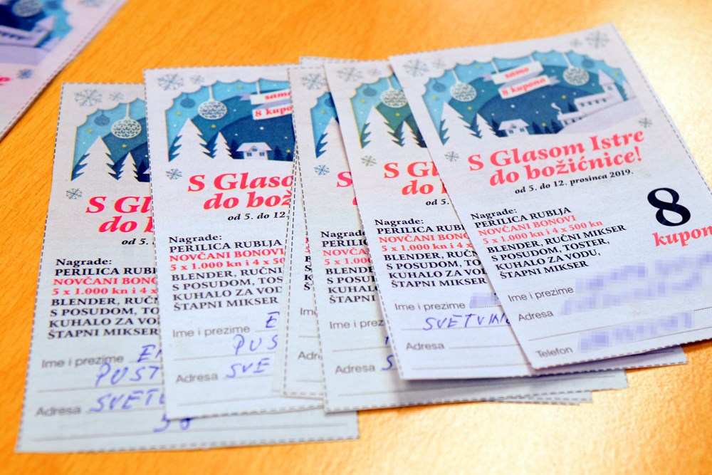 Današnjim izvlačenjem imena dobitnika blagdanske nagradne igre, završen je posljednji ovogodišnji ciklus darivanja Glasa Istre. Samo osam nagradnih kupona, koje smo objavljivali u tiskanom izdanju od 5. do 12. prosinca, bilo je potrebno za osvajanje neke od nagrada i, naravno, malo sreće.