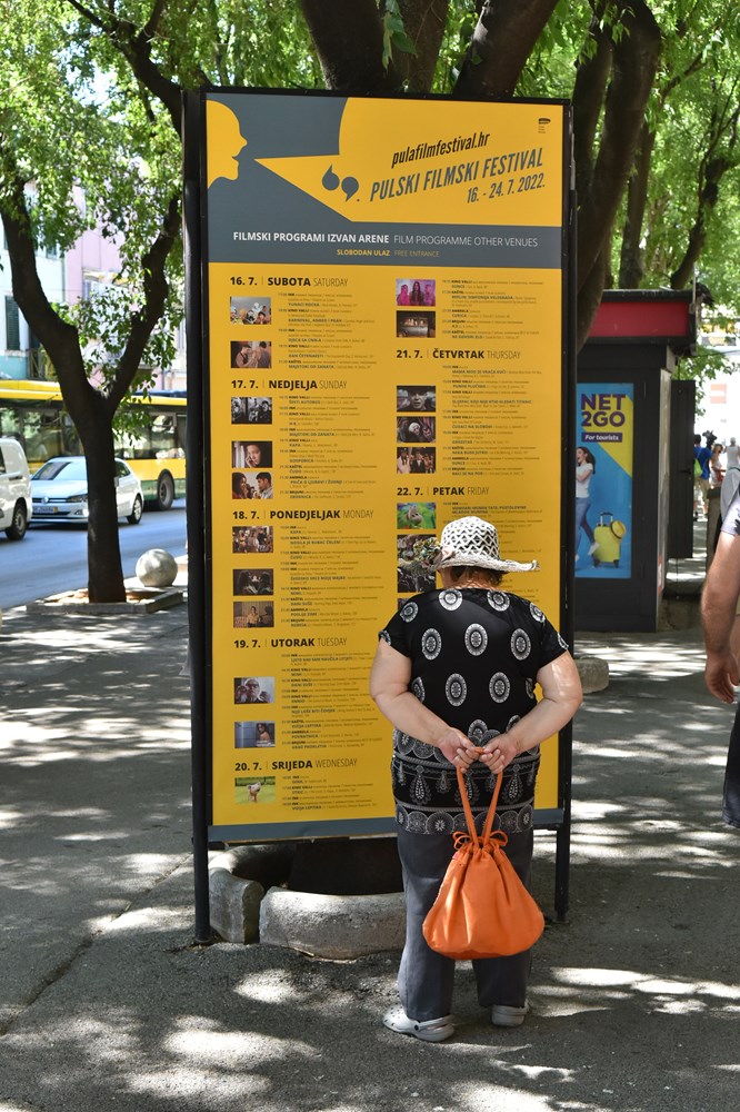Komentira se kako tko izgleda, je li ljepši uživo ili na filmu. A film ne možeš izbjeći - Arena, Kaštel, Ambrela pa čak i Brijuni imaju svoje filmske projekcije. Jedno je sigurno, Pula je ovih dana u svom filmu, kako hrvatskom tako i međunarodnom. Svjetskom. Srednjoškolci, mahom ljubitelji filma, volontiraju u Areni i oko nje.
