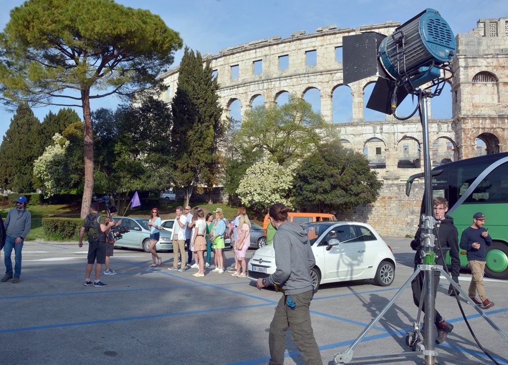 Nakon što se danas ujutro snimalo u Poreču, poslijepodne je ekipa preselila u Pulu. Snimalo se oko Arene, odnosno na Karolini, a naš je fotoreporter zabilježio snimanje plesne scene. U petak će se snimanje nastaviti u centru grada, na raskrižju Laginjine i Anticove, ispred kazališta, gdje će se snimati scena s taksijem, nakon čega se snimanje seli na Forum, što je zadnja točka. U spotu će se vidjeti ljepote Pule - Arena, Forum i druga mjesta.