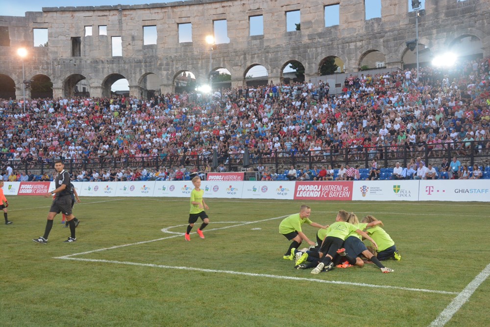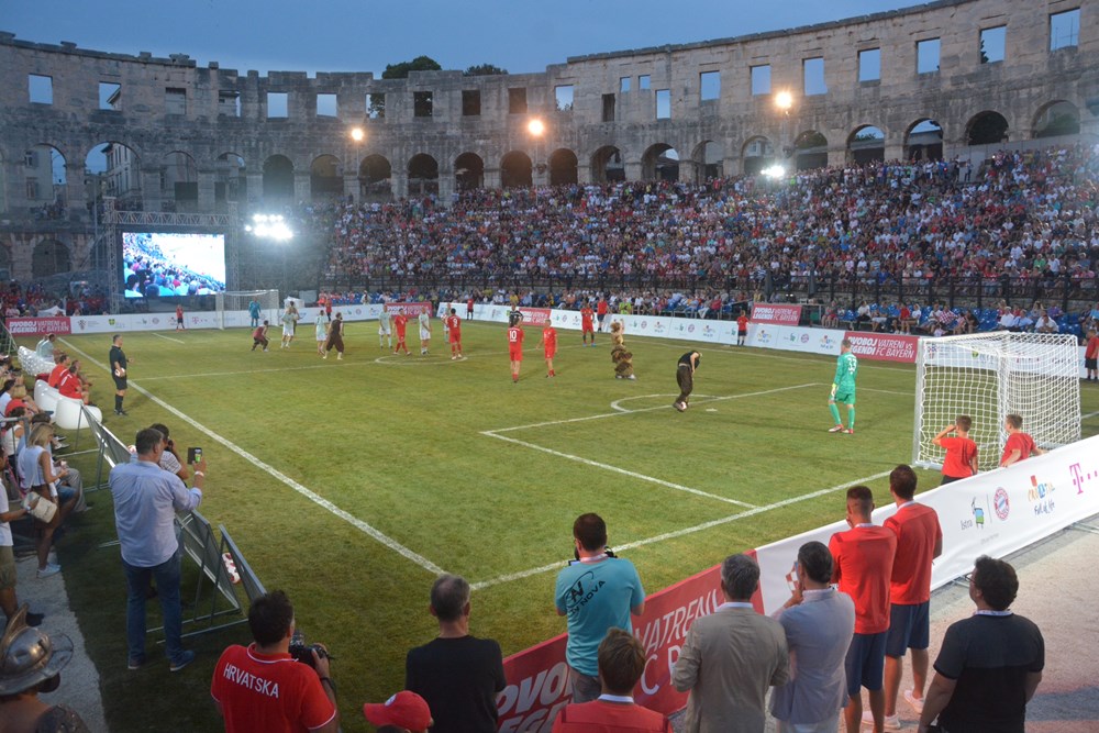 Nakon što je prije nekoliko godina svijet obišla slika prve hokejaške utakmice u povijesti koja je odigrana u jedinstvenoj scenografiji koju pruža drevni Vespazijanov amfiteatar, a zatim prošlog ljeta i spektakularna razglednica s 14 tisuća vatrenih navijača koji su u njoj pratili finale Svjetskog nogometnog prvenstva, popularna pulska Arena bez sumnje ponovno biti vijest na svim kontinentima zahvaljujući sinoćnjem eventu. Legende münchenskog Bayerna i legendarni Vatreni koji su 1998. godine osvojili treće mjesto na Svjetskom prvenstvu u Francuskoj do zadnjeg su mjesta napunili sinoć tribine Amfiteatra, te pokazali da usprkos dugogodišnjoj mirovini vještina i umijeće baratanjem loptom ne blijedi, te da u svima njima ima još jako puno nogometa.