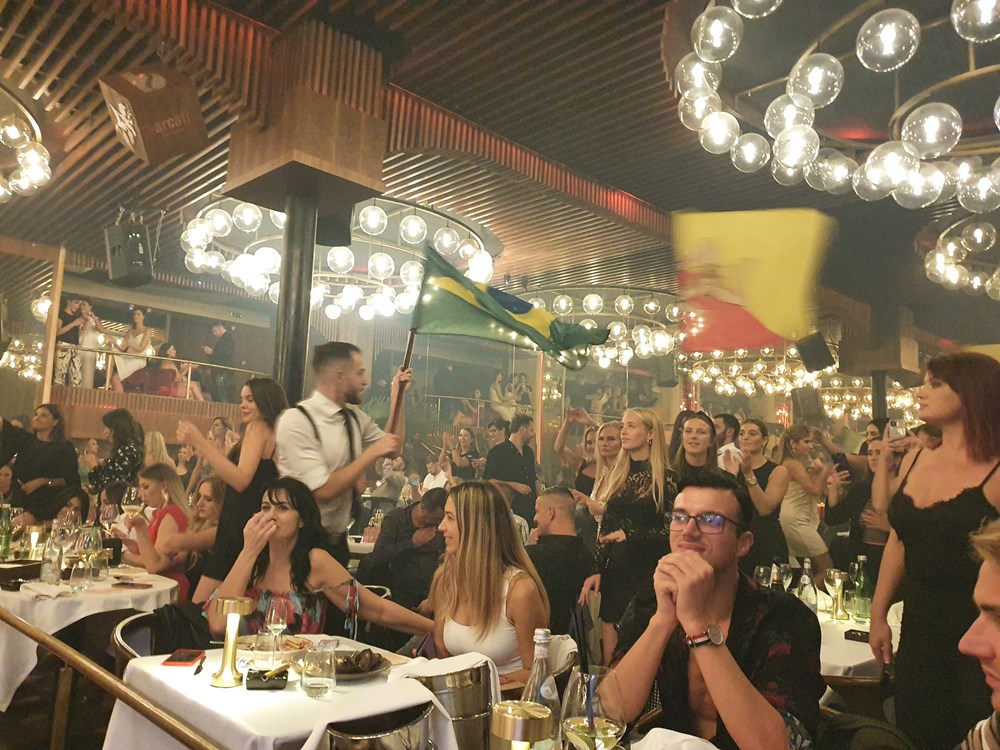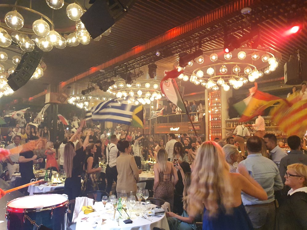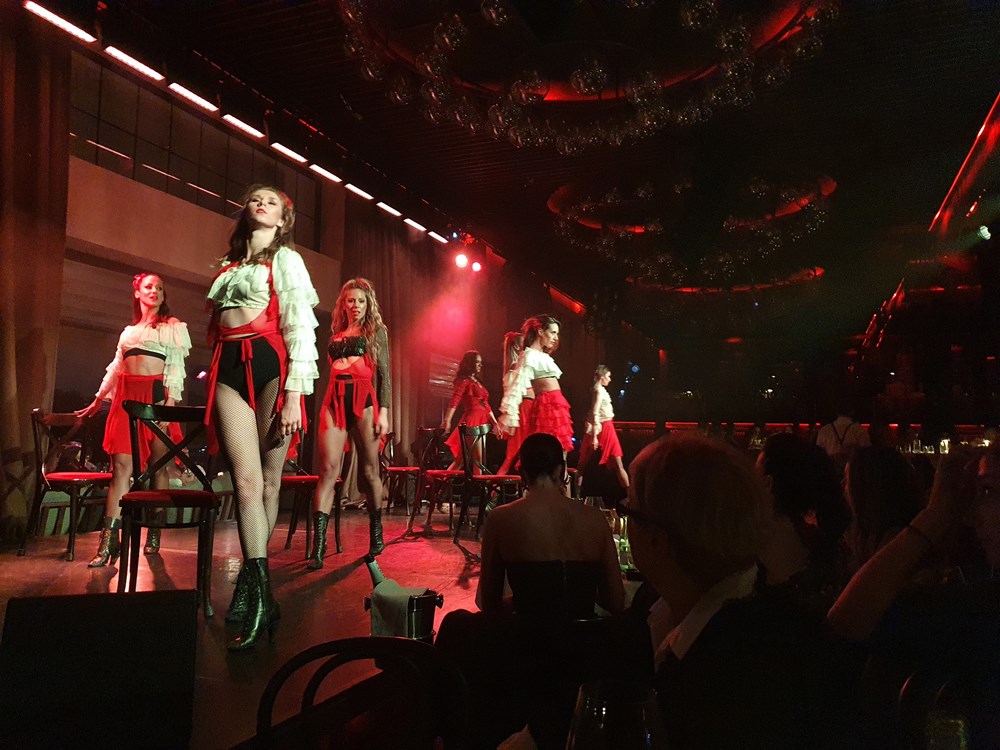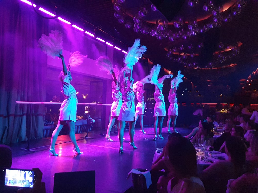 Spuštanjem s galerije ulazi se u golemi prostor koji je uređen taman negdje na granici kiča i otmjenosti, s desecima stolova u nepreglednoj sali i konobarima s tregerima koji, kako će se pokazati, sudjeluju i u programu kabareta. To su najluđi dijelovi večeri, jer kad se konobarska ekipa i kuhari popnu na šank i stolove, zapale baklje i počnu mahati zastavama različitih zemalja, doslovno više nitko ne sjedi. Ni stariji ljudi, jer jedna od specifičnosti ovakvih oblika zabave jest da nisu namijenjene samo za tinejdžere, ni Iva Todorić, koju smo ove lude večeri vidjeli u Lafayetteu.