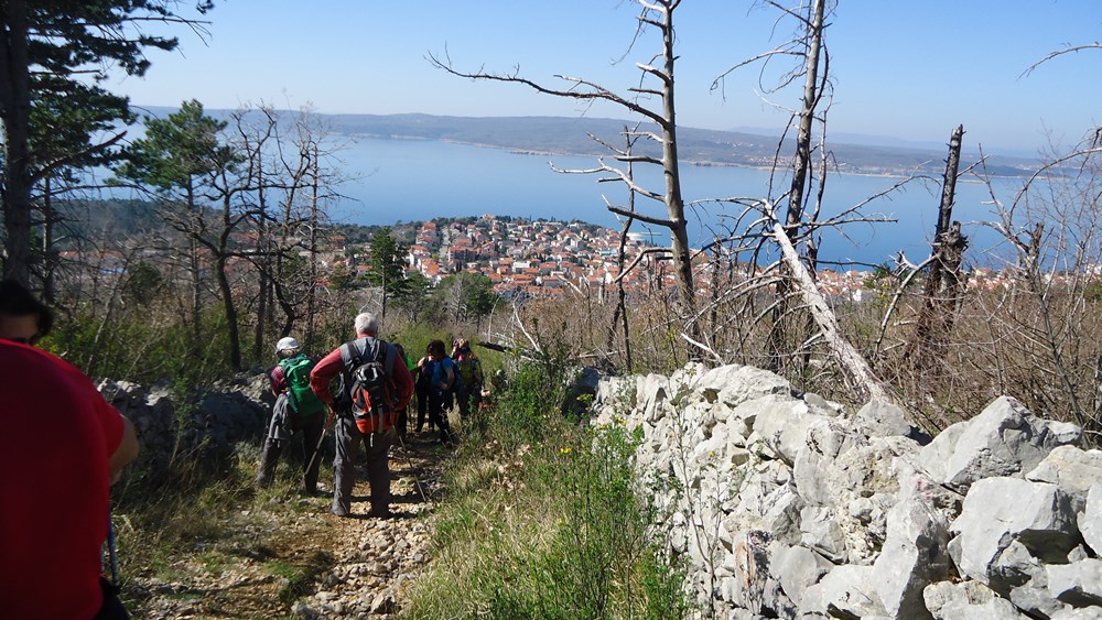 Prvi dio puta prolazi kroz borovu šumu, zatim slijedi goli kamenjar sa škrtom travom i ostacima stabala, koja su pred nekoliko godina stradala u požaru. Izuzetno je topao dan, pa se lijeno krećemo ka vrhu. Lijep pogled na morsku stranu bar malo ublažava vrućinu; u podnožju se skutrilo Selce odakle smo krenuli i Crikvenica, a preko puta se plavi otok Krk i mjestašce Šilo. Na Drenin, visok 381 metara, stižemo oko podne, a na vrhu koji je prirodni vidikovac bar malo puše, pa nakon odmora i marende iz ruksaka, počinjemo silazak, a onda opet uspon do mjesta Kotor (koji nema veze s puno poznatijim, crnogorskim). Tu su živjeli Crikveničani do kraja 18. stoljeća, kad je Kotor opustošio veliki požar, a stanovništvo pobjeglo prema moru. Danas je mjesto pomalo napušteno, mada kućice izgrađene od kamenja iz okolice i nekoliko crkvica u ovom proljetnom danu, pozivaju na odmor u miru i tišini.