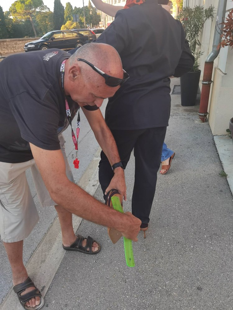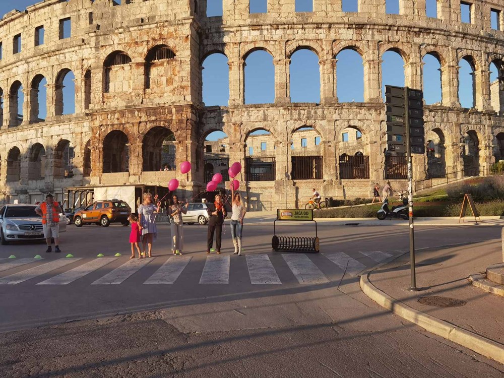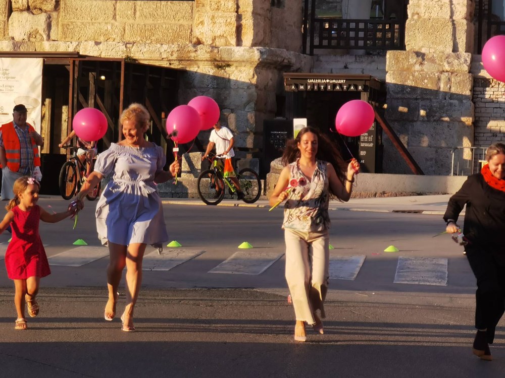 Četiri trkačice za četvrto izdanje utrke u štiklama. Baš tako. Ne zna se je li korona izbacila iz forme trkačice ali jučerašnja "Štikla and Beerun" privukla je točno toliko odvažnih trkačica na "visokoj nozi". Manifestacija "Teći isti i piti" spojila se sa Gastro Buzz festivalom pa su ove godine utrka trčala od hotela Amfitetar do rimskog amfiteatra i nazad. Sve u svemu sto metara, kratka ruta koje postaje duže što je peta viša. Nakon početnog mjerenja štikli i smanjenog kriterija, četiri trkačice su sa roza balonima krenule u žensku utrku. Bez padanja u nevjerojatno dugim i sigurnim koracima u ne baš jakoj konkurenciji nježnijeg spola u kaubojskim čizmama pobijedila je atraktivna 36-godišnja Iva Zembo, bolja polovica poznatog kuhara i organizatora Gastroi Buzz festivala Denisa Zemba. Ne radi se o nikakvom favoriziranju supruge organizatora festivala, već su zasigurno kaubojske čizme bile ugodnije od potpetica.