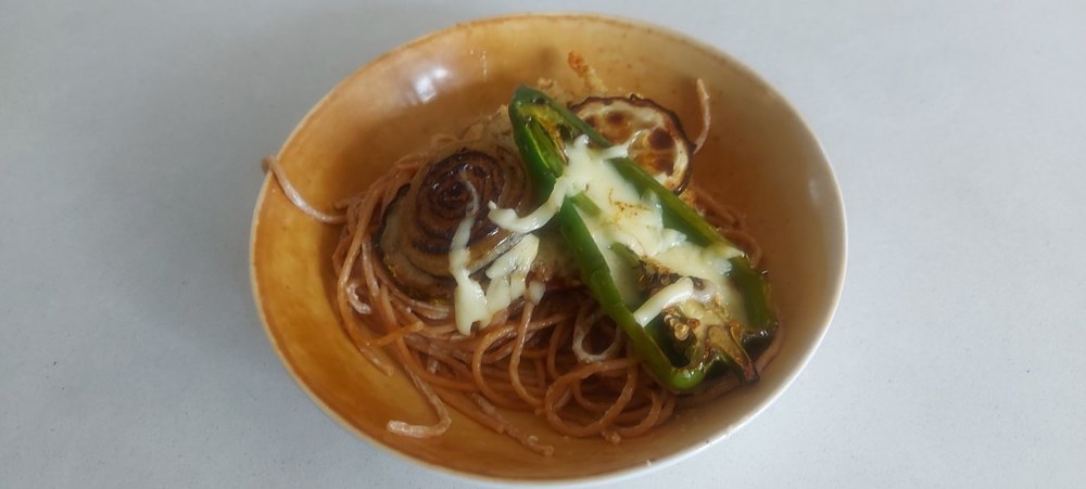 Nakon cca 3 do 5 minuta dobit ćete rastopljenu hrskavu sirnu masu. Nakon što ste ispekli povrće i sir stavite ih privremeno na veći plići tanjur.