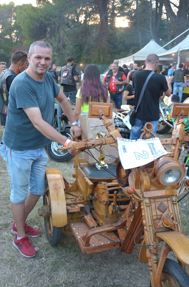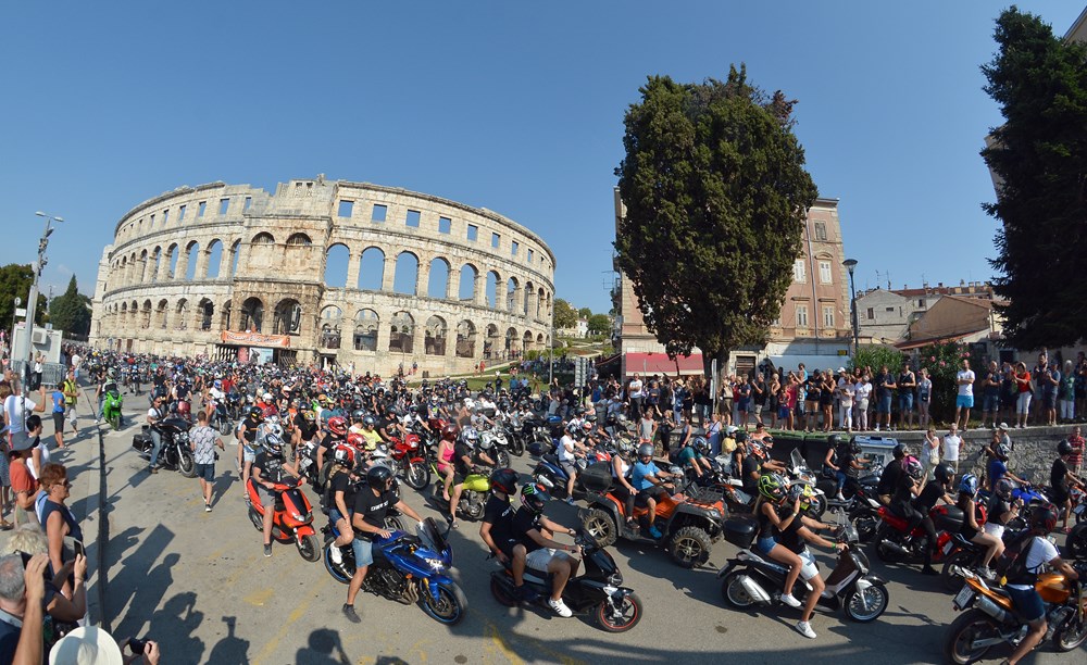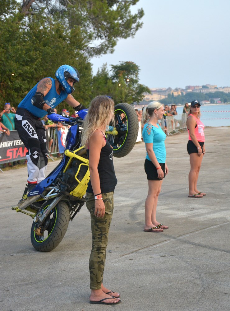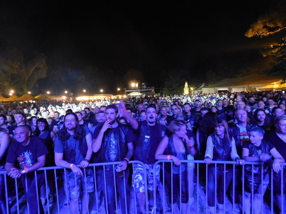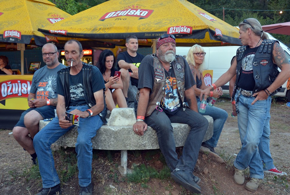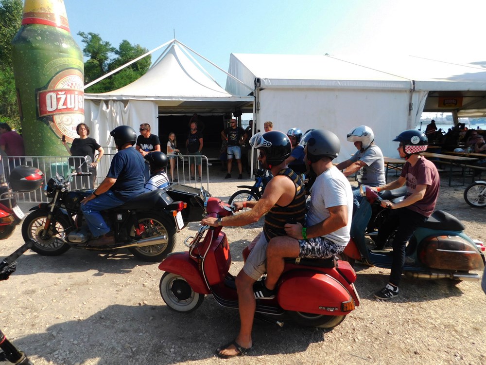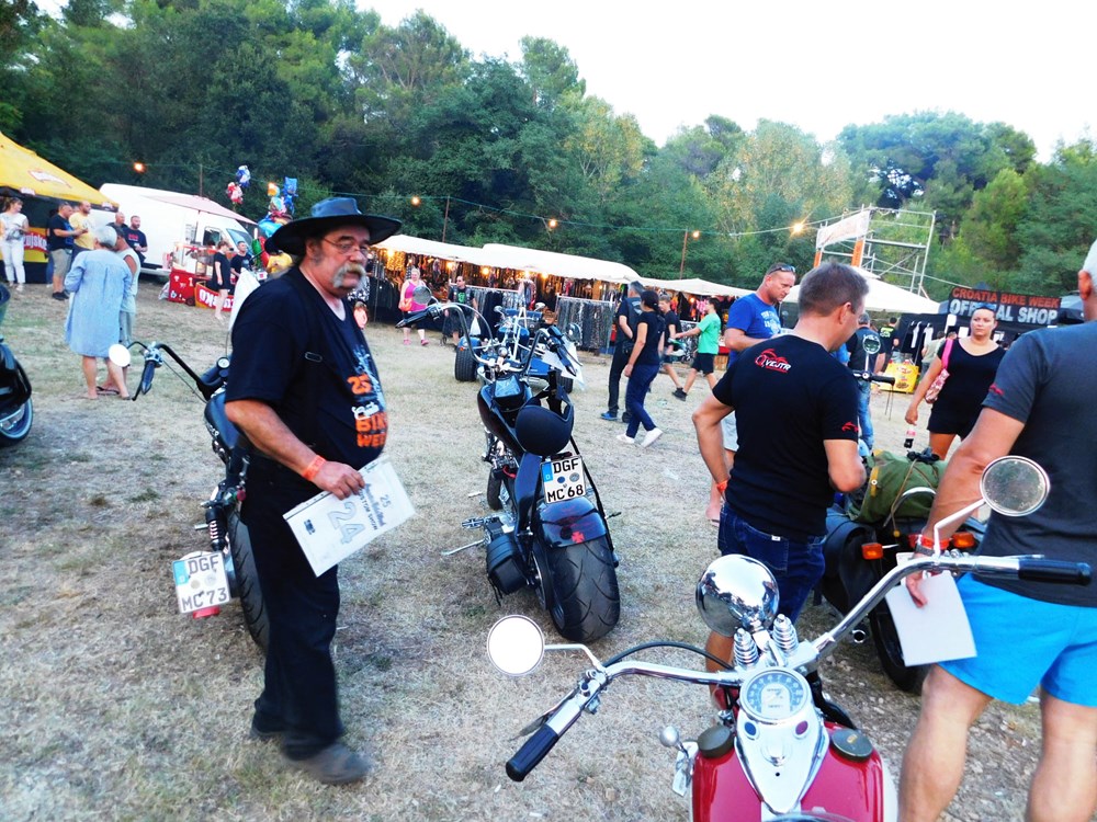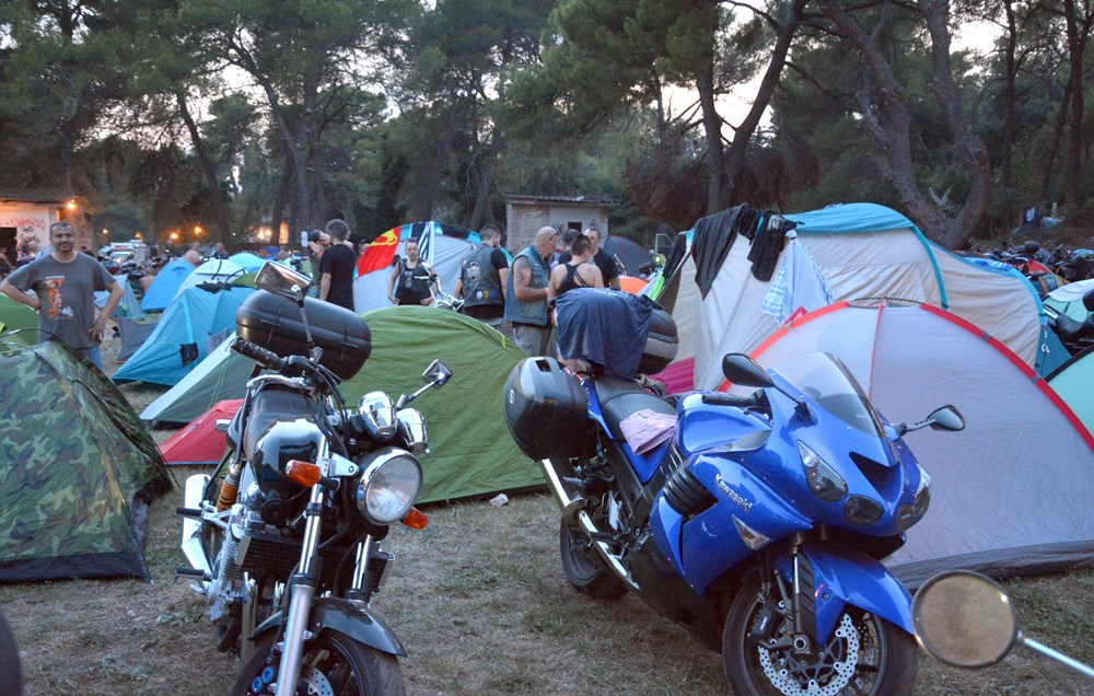 Na majici jednog od njih piše na engleskom "Moj motor! Moj život! Moj izbor!" Tu je i nekih sedam do osam tisuća motocikala, pa neizbježni štandovi s robom, šator za masažu, mjesto za tetoviranje i puno šankova, da se utaži sva ta žeđ potaknuta vrelim ljetnim suncem koje je ostavilo traga na toploj, premda ugodnoj noći. Doista, učinilo nam se da ovdje na Vallelungi nije bilo toliko sparno kao u centru Pule. Tim bolje. Izvan ograđenog prostora oko pozornice bilo je pristanište za brod, a u produžetku, dalje od pozornice u smjeru Štinjana prostor za kampiranje.