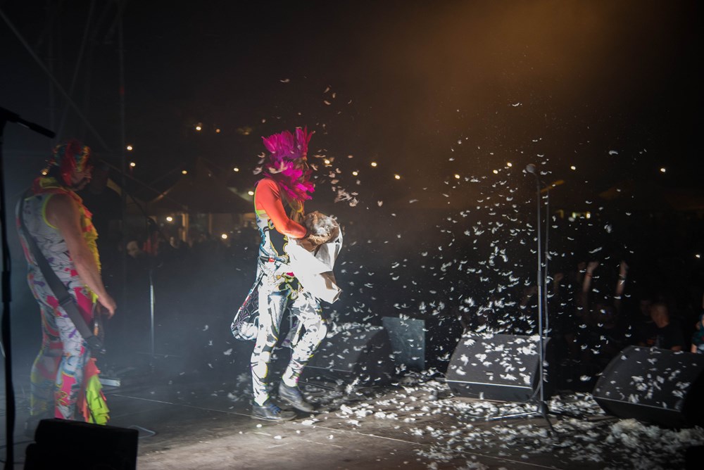 Miris roštilja bio je prvi znak da smo se brodom koji je išao s pulske rive približili na sigurnu udaljenost Vallelungi. Već iz daljine ovo nekadašnje vojno područje djelovalo je osvijetljeno i oživljeno poput malog grada. Improviziranog, ali funkcionalnog i koliko smo mogli primijetiti, prilično dobro organiziranog gradića. Ne i užurbanog, nego naprotiv vrlo opuštenog, sve je išlo sporo, lagano, pa je najbrži tempo davao bubnjar benda na pozornici. Bili su to Dino Jelusić & Animal Drive koji su publiku zabavljali kombinacijom hard'n'heavyja, kombinirajući obrade s autorskim stvarima. Bili su dobri, zbilja su se potrudili i djelovali profesionalno.