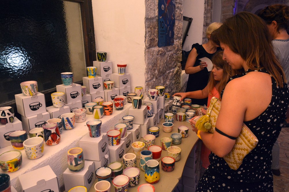 I ovoga je puta manifestacija imala humanitarnu notu pa je, nakon otvorenja izložbe, na prodaju ponuđeno 120 keramičkih šalica koje su izrađivali članovi Udruga Art studio, a bojala djeca iz Dječjeg vrtića Petar Pan iz Vodnjana, mališani vrtića Maslačak iz Pule, učenici četvrtih razreda škole Vodnjan i članice keramičarske grupe Zajednice Talijana Vodnjan te članovi i volonteri Udruge Art studio. Kupnjom šalice, po cijeni od 70 kuna, pomoglo se Udruzi "Naš san njihov osmijeh" za nabavku namirnica obiteljima slabije imovne moći. Dok traje manifestacija šalice će se moći i dalje kupiti u galeriji Art studio koja se nalazi iza Foruma. (B. PETROVIĆ, snimio D. MEMEDOVIĆ)