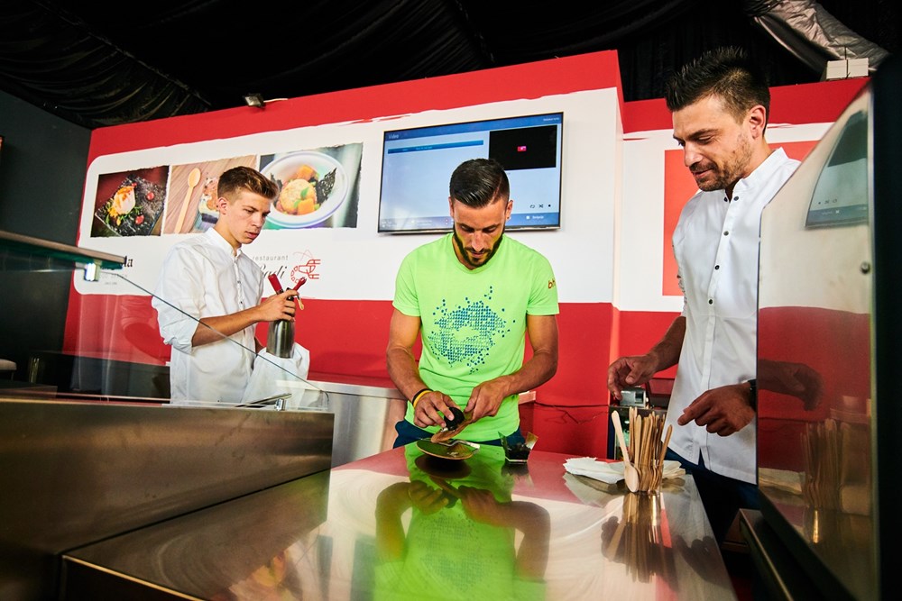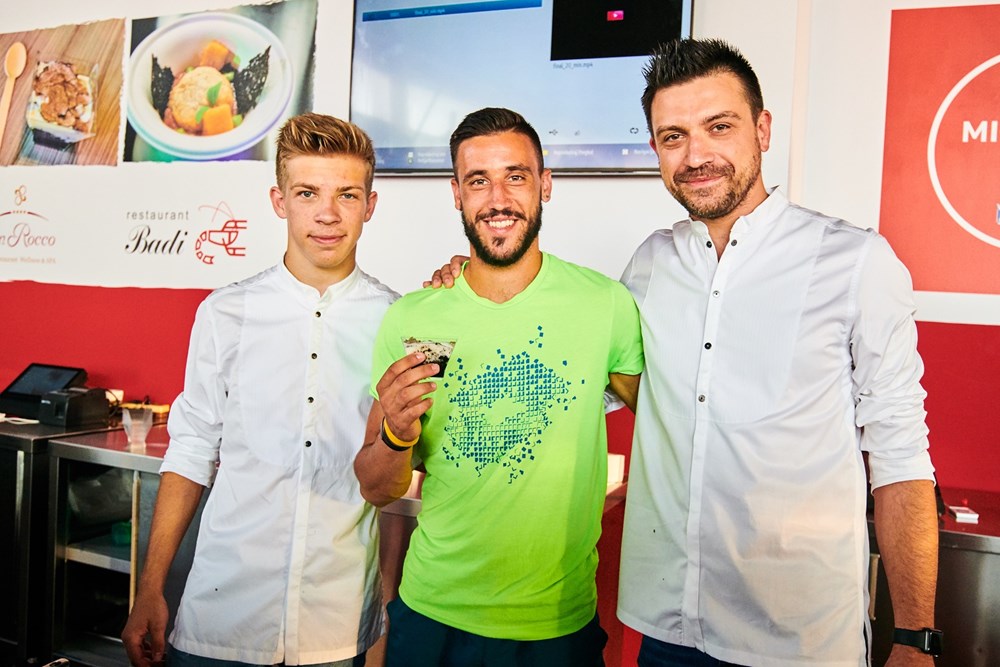 Tenisač Damir Džumhur imao je jučer pune ruke posla na Michelinovom punktu Istria Gourmet Festivala gdje su ga dočekala tri vrhunska chefa i prepustila mu kuhaču u ruke. S Mariom Coslovichem, pomoćnikom Fabricia Vežnavera, chefa Pergole pripremao je hobotnicu na majonezi od hobotnice s chillijem i bergamotom, za štednjakom restorana San Rocco chef Teo Fernetich dočekao ga je sa sastojcima za cappucino od sipa, krumpira i tartufa, dok je od chefa restorana Badi, Aleksandra Grubića, učio spremati riblji tartar. Džumhur je prošle godine osvojio dva turnira i ove im godine pridodao i onaj u Antaliji, definitivno je najbolji tenisač kojeg je BiH imala, no priznaje, kad je riječ o kuhanju, bolje jede no što kuha.