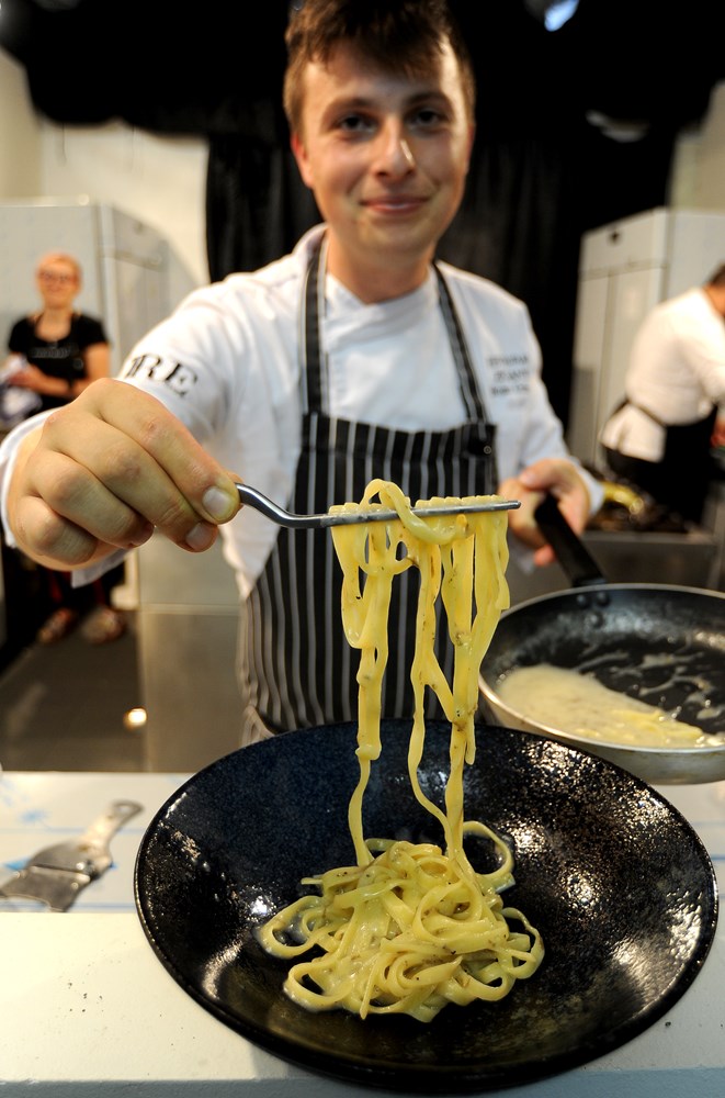 - Kao svoje favorite izdvojio bih salatu od cikle, mladog kozjeg sira s dresingom tostiranih badema. Lagana ljetna hrana. Isto vrijedi i za toplo predjelo: tagliolini od dimljenih dagnji, kozica i cherry rajčica. Od glavnih jela bih preporučio file romba u emulziji od leccina i malvazije s kaparima, s peperoncinom i broskvom na padelu, odgovara Tomšić na pitanje što je najprihvatljivije kušati na ovim visokim temperaturama. U nastavku razgovora saznajemo da je Tomšić prvi otvorio poznati Kukuriku restoran u Kastvu, gdje je bio šef kuhinje sedam godina, a zatim je 11 godina radio i kao chef u restoranu Draga di Lovrana.