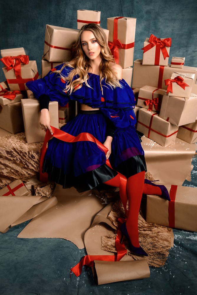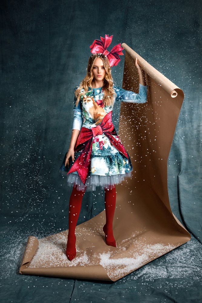 Za ovu kolekciju posebno su dizajnirane tkanine sa božićnom tematikom, a osim printanih modela, u ponudi su i raskošne haljine od crvenog pliša. Kreacije nisu za minimaliste, već su čista personifikacija božićnog duha koji je doslovno interpretiran impresionističkim Boudoir rukopisom.