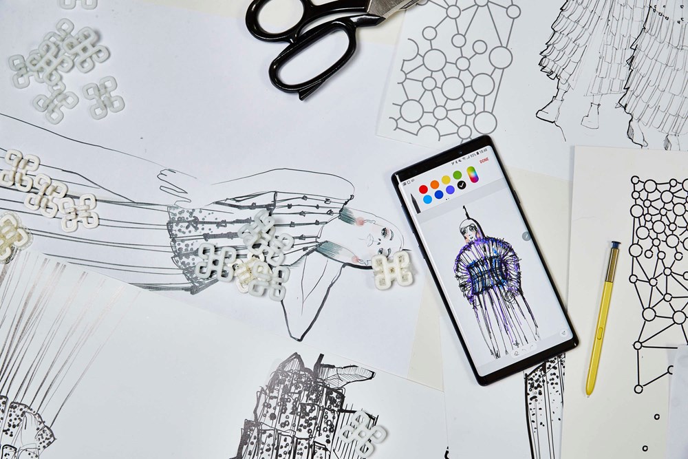 S Pen olovkom moćnog Note9 dala je preciznost i kontrolu u skiciranju, a snažne mogućnosti obrade i gotovo beskonačna memorija uređaja omogućile su dizajnerici izravno povezivanje s novim tehnološkim alatima. Isti su omogućili brzu izradu i uređivanje u oba razvojna stadija te u finalnoj produkciji kolekcije, a sve to na uređaju koji može stati u džep. Note9 ubrzao je izradu prototipa za oko 40 posto, a sama kolekcija je stvorena u osam dana, umjesto uobičajenih 14.