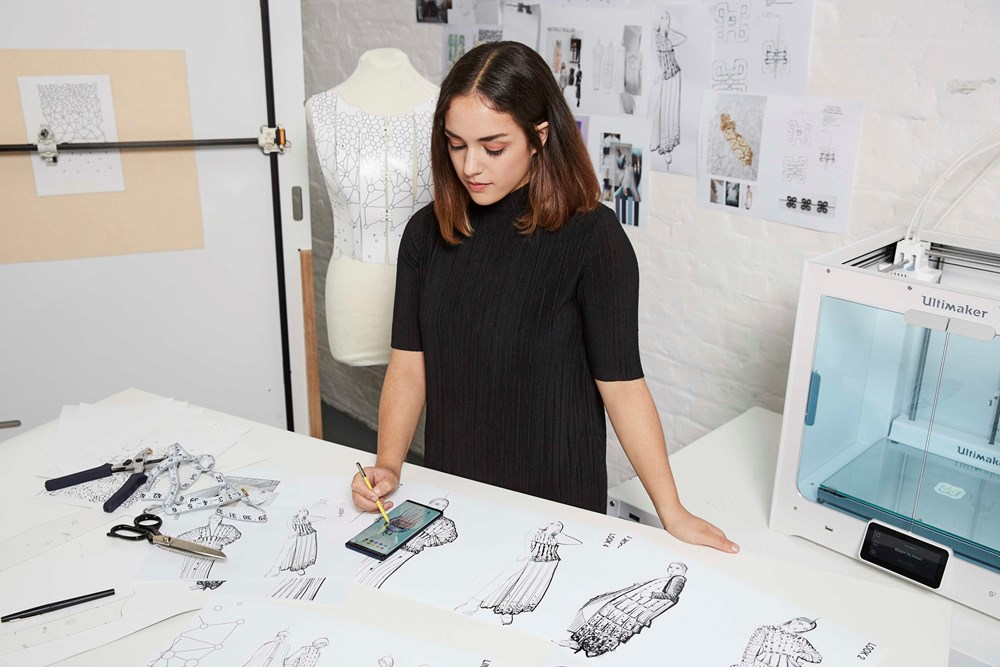 Mobilni telefon korišten je za skiciranje te bežično komuniciranje s novim proizvodnim alatima, printanje 3D pričvršćivača i uzoraka tkanina za stvaranje ove neobične kolekcije. Sve to omogućilo je dizajnerici da ubrza čitav proces izrade prototipa i razvoja kroz jednostavno sinkroniziranje aplikacije s dobavljačima. Također, to joj je omogućilo da svoj dizajn napravi gdje god se nalazila.