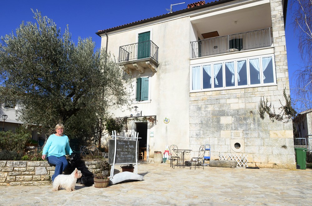 Prepričava nam kako je u posjed imanja, na kojem se sada proteže ovo turističko carstvo, došla igrom slučaja. Zapravo je, priznaje nam, kupovala parcelu uz cestu jer se odlučila baviti prodajom automobila, no uz nju je dobila i staru kamenu kuću. Kada ju je odlučila obnoviti, i u njoj napraviti studio apartmane, svi su je podozrivo gledali pitajući se "Ma koji će ti turist ovdje doći?" Srećom, prevarili su se jer ovdje dolaze turisti iz cijeloga svijeta.