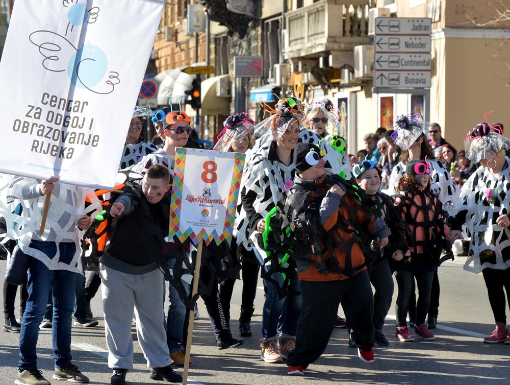 Pa još sve te boje, dječji smijeh, cika, uzbuđenje, dobre vibracije, veselje, inventivni maškarani kostimi... Kao da je netko zasadio šareno cvijeće od Gata Karoline Riječke, pa preko Trga 111. brigade HV-a, Trga Republike Hrvatske, duž Korza, Scarpine ulice, Trga bana Jelačića, Ribarske ulice i preko Grobničke rive do zgrade Export Delte.