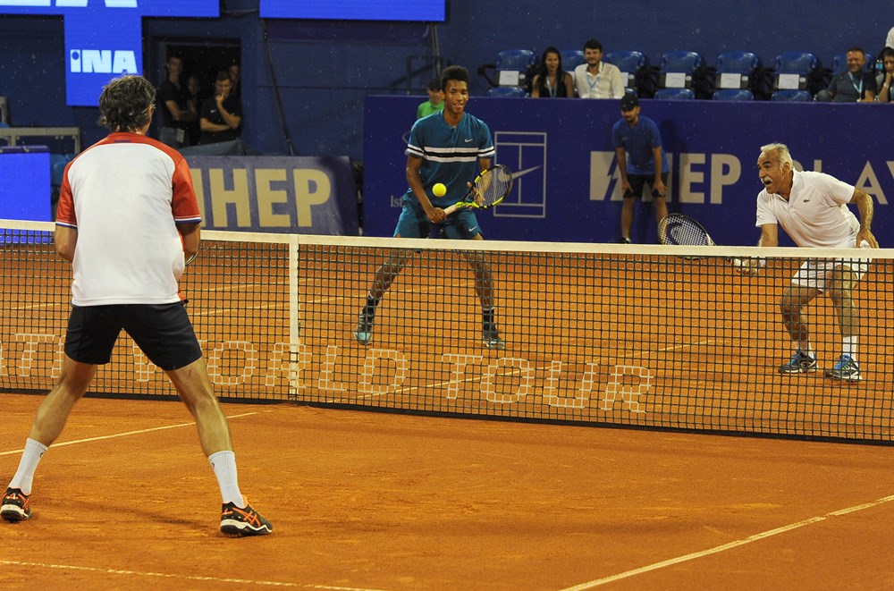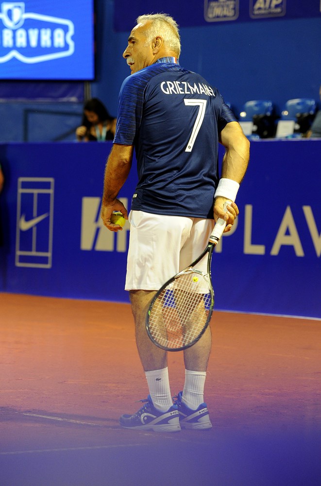 Osim kao najbolji hrvatski tenisač, Goran Ivanišević poznat je i kao strastveni fan nogometa i hrvatske nogometne reprezentacije te je stoga jučer pozorno pratio finale Svjetskog nogometnog prvenstva u Rusiji. Jučer je u Umagu ipak nogomet bio u prvom planu, finale Svjetskog prvenstva pratilo se u Social Areni. Vatrenima je Ivanišević posvetio i preksinoćnu ekshibiciju koju je zaigrao protiv Mansoura Bahramija i Felixa Augera Aliassimea. Na teren je izašao uz pjesmu "Neopisivo" i u "kockastom" dresu. Iako je nedugo nakon početka ekshibicije počela padati kiša, publika se nije dala smesti te su nastavili navijati za igrače koji su ih nasmijavali svojim teniskim trikovima i međusobnim podbadanjima.