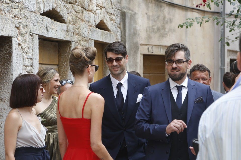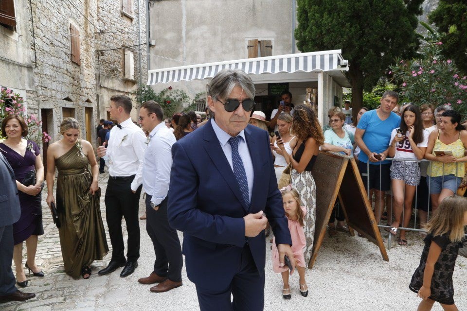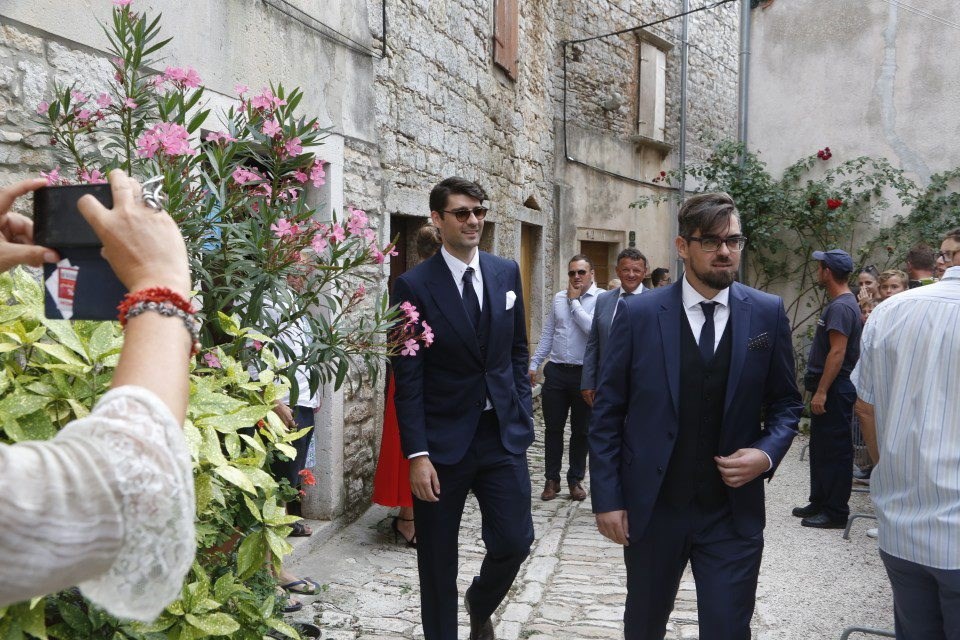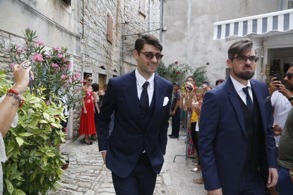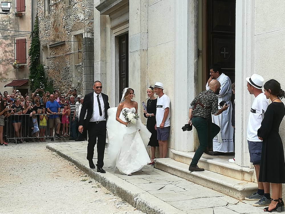 Dvadeset minuta prije dogovorenog termina u 17 sati, u pratnji nekolicine muškaraca u crkvu je ušetao lijepi Čarli, što je naravno, popraćeno ovacijama posjetitelja. No, za Franku Batelić i njen ulazak u crkvu valjalo je biti nešto strpljiviji pa su u iščekivanju lijepe mladenke fotoreporteri vrijeme kratili fotografiranjem uzvanika i organizatora vjenčanja. Tako se višekratno "u kadru", našao i poznati istarski dizajner Boris Ružić i njegova ekipa "BR", zadužena da ceremonija prođe u najboljem redu - od samog uređenja pa sve do onog trenutka kada se, s polusatnim kašnjenjem Franka pojavila te u pratnji dizajnera i ušla u crkvu s oltarom okićenim bijelim hortenzijama. (Piše Nina ORLOVIĆ RADIĆ)