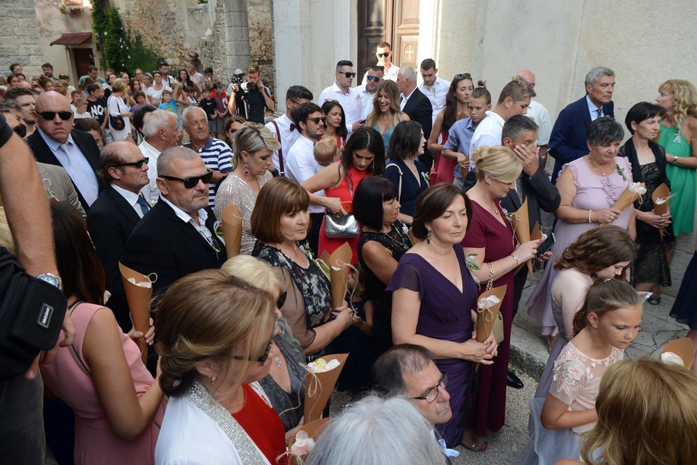 Naime, dvorište oko crkve bilo je ograđeno, što publici koja je željno iščekivala dolazak mladenaca nije teško palo. Oni najmlađi, najbolje su se snašli i uredno ulogorili na "travi" i u tzv. VIP zoni za kamermane i snimatelje.