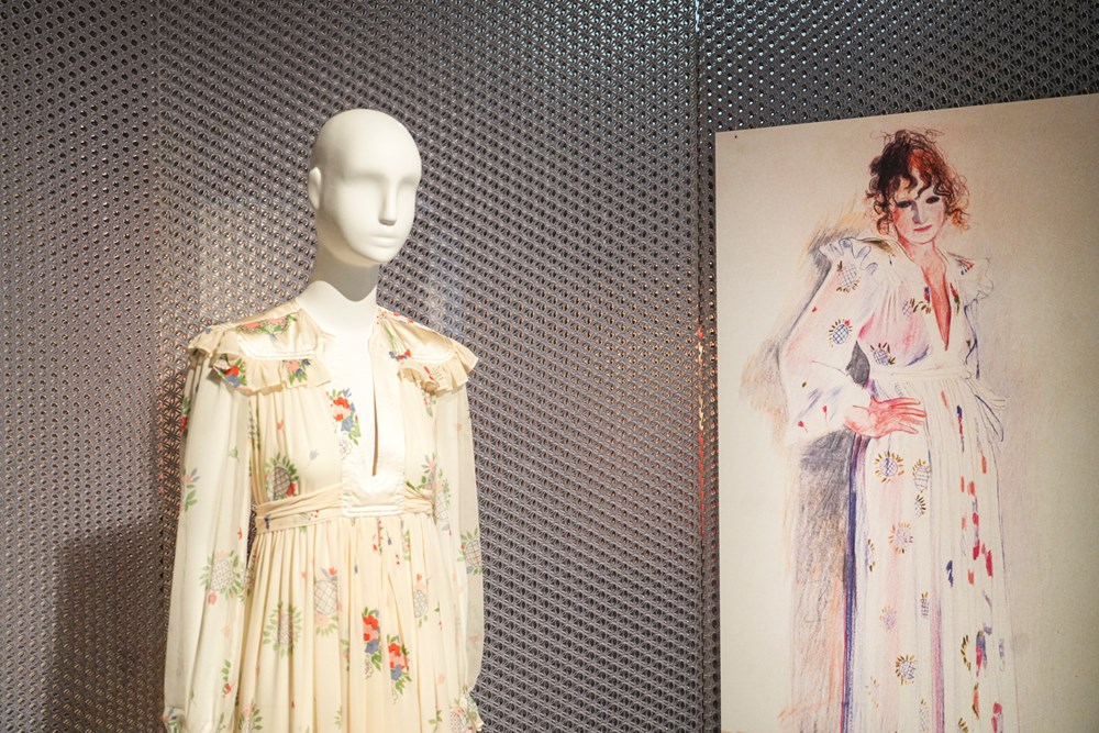 Iz fundusa dvije privatne zbirke (talijanskog kostimografa i kolekcionara Massima Cantinija Parrinija i neodoljive Lauren Lepire, vlasnice čuvenog vintage boutiquea iz Los Angelesa, prisutnih na otvorenju), kao i milanske Zaklade Sozzani izloženo je četrdesetak "ikonskih" eksponata, od čega deset haljina od papira, sedam bilježnica s crtežima i skicama, ali i njihov portret zajedničkog prijatelja Davida Hockneya iz londonskog muzeja Tate Britain.